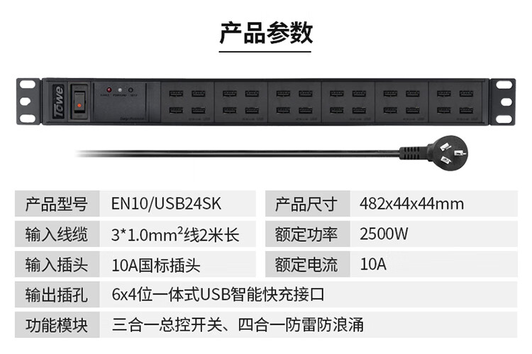 TOWE同为工业级多口多路usb智能插座usb充电器pdu插排 刷机拷机usb智能快充PDU机柜插座 6x4位一体式USB智能快充接口,EN10/USB24SK