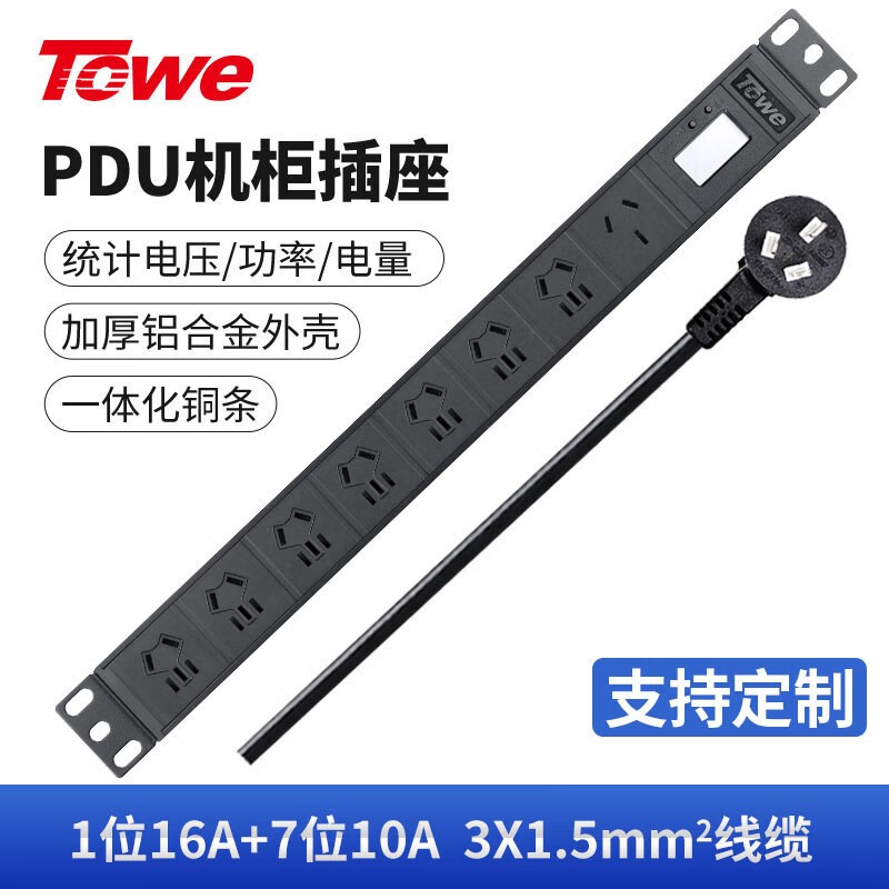 TOWE同为智能数显功率计量PDU机柜插座电源管理器 显示和计量电压插座排插 功率计量PDU插座 1位国标16A+7位10A新国标五孔,EN10/G802J