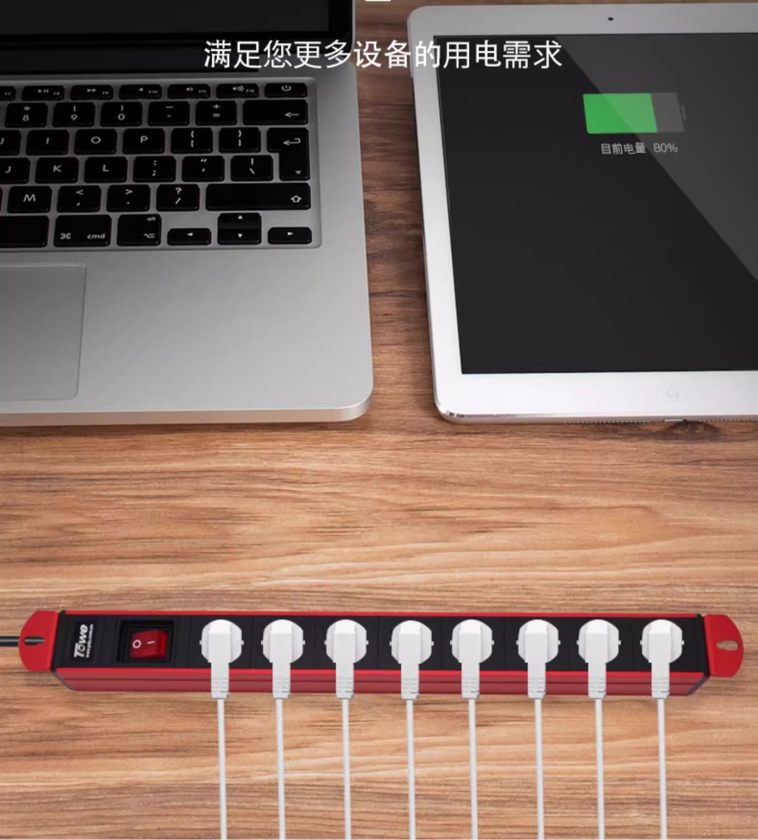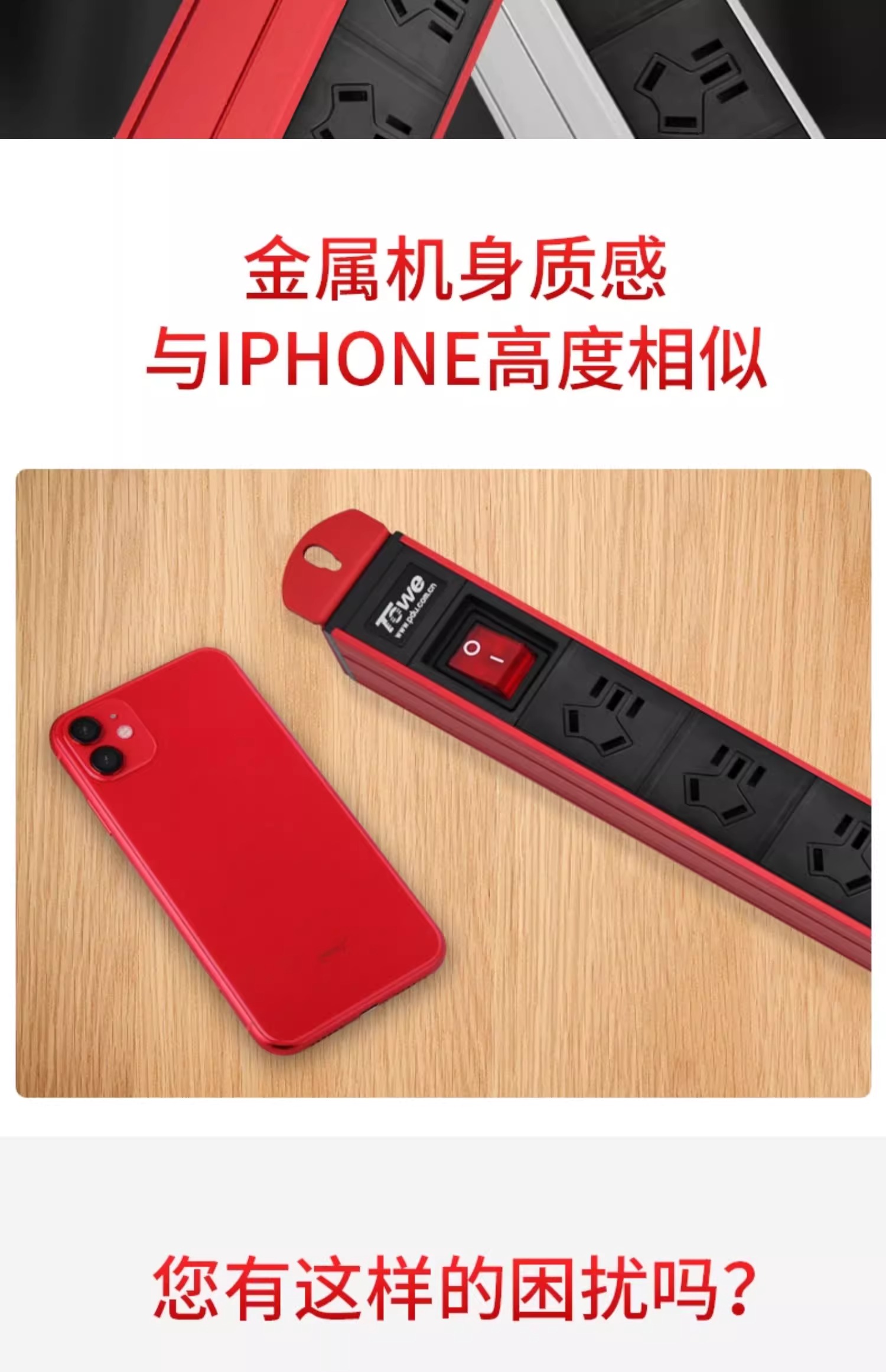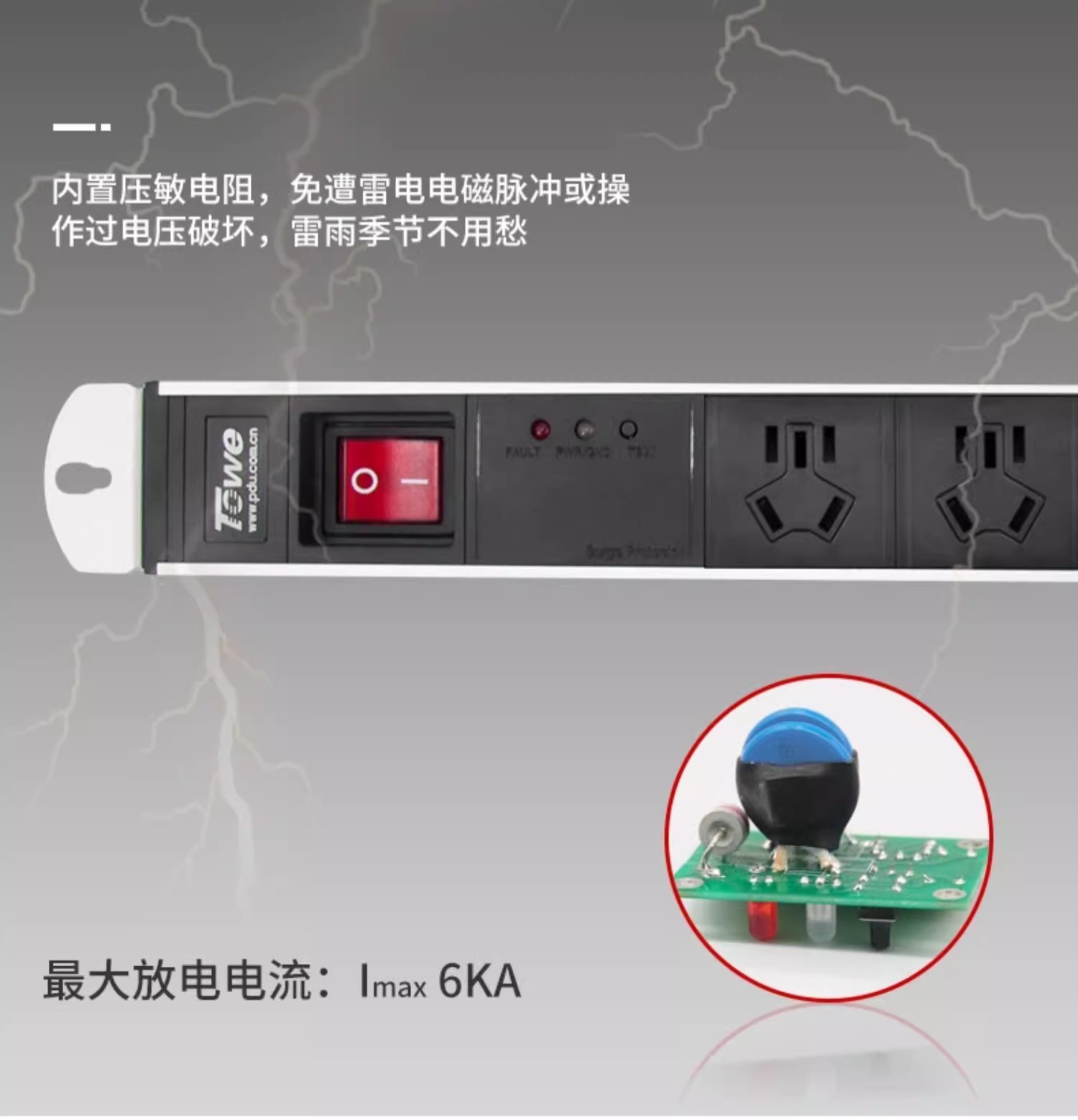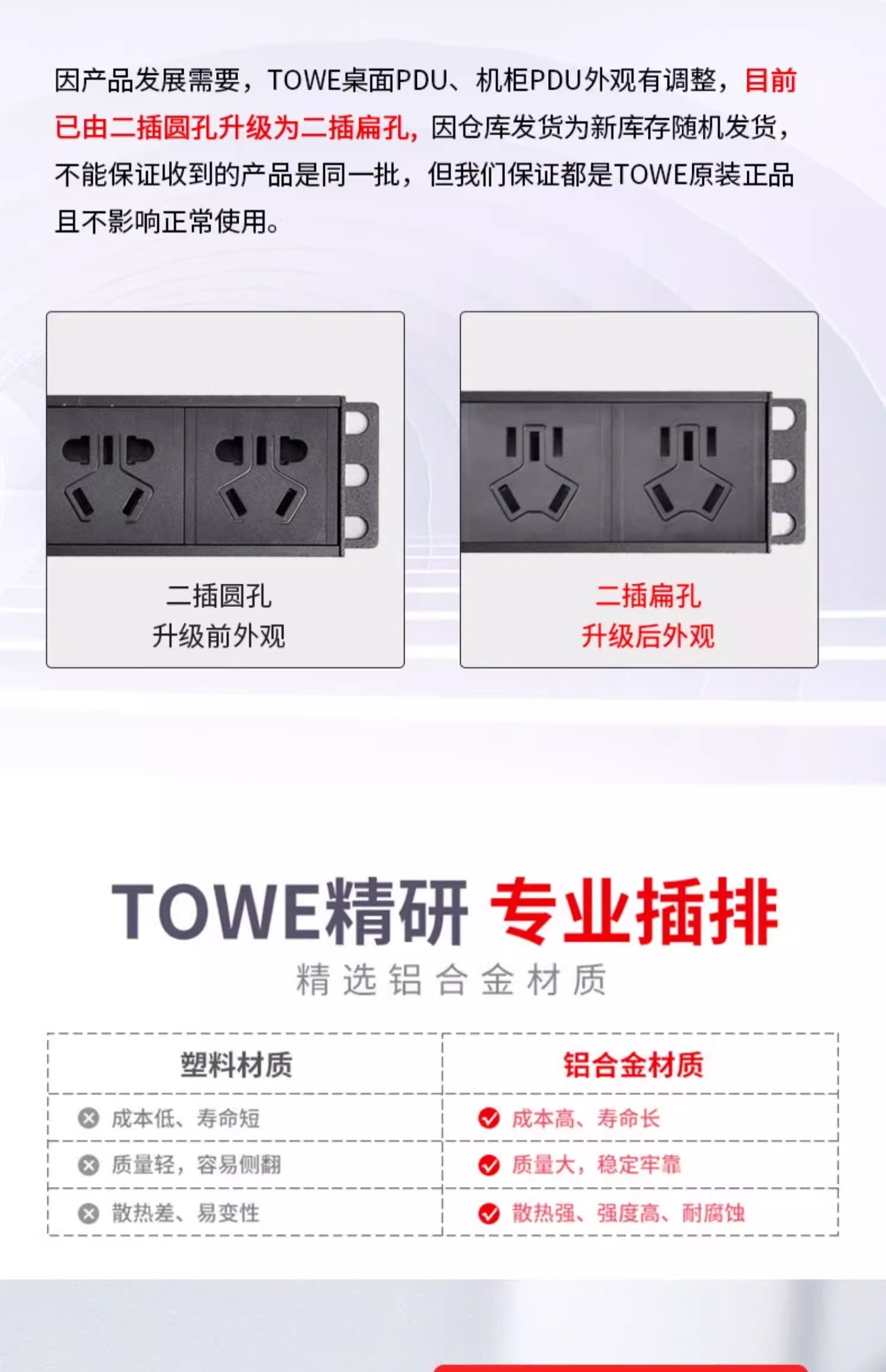 TOWE同为高端pdu机柜插座10A总控防雷防浪涌工业工程插排 炫彩豪华高端系列 总控防雷炫彩PDU插座 7位10A新国标五孔,EN10/C71KS中国红