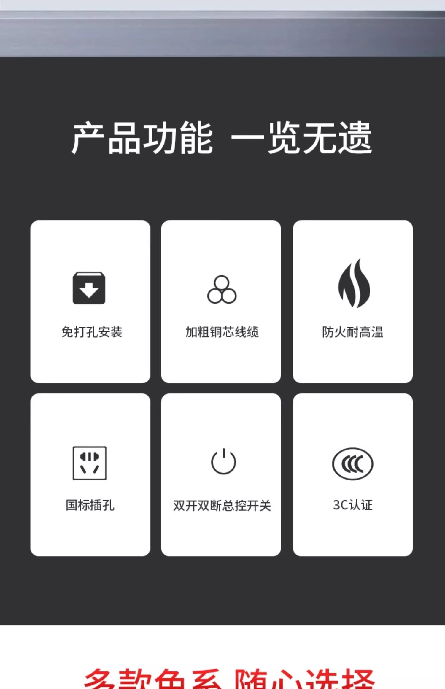 TOWE同为高端pdu机柜插座10A总控防雷防浪涌工业工程插排 炫彩豪华高端系列 总控防雷炫彩PDU插座 7位10A新国标五孔,EN10/C71KS高雅黑