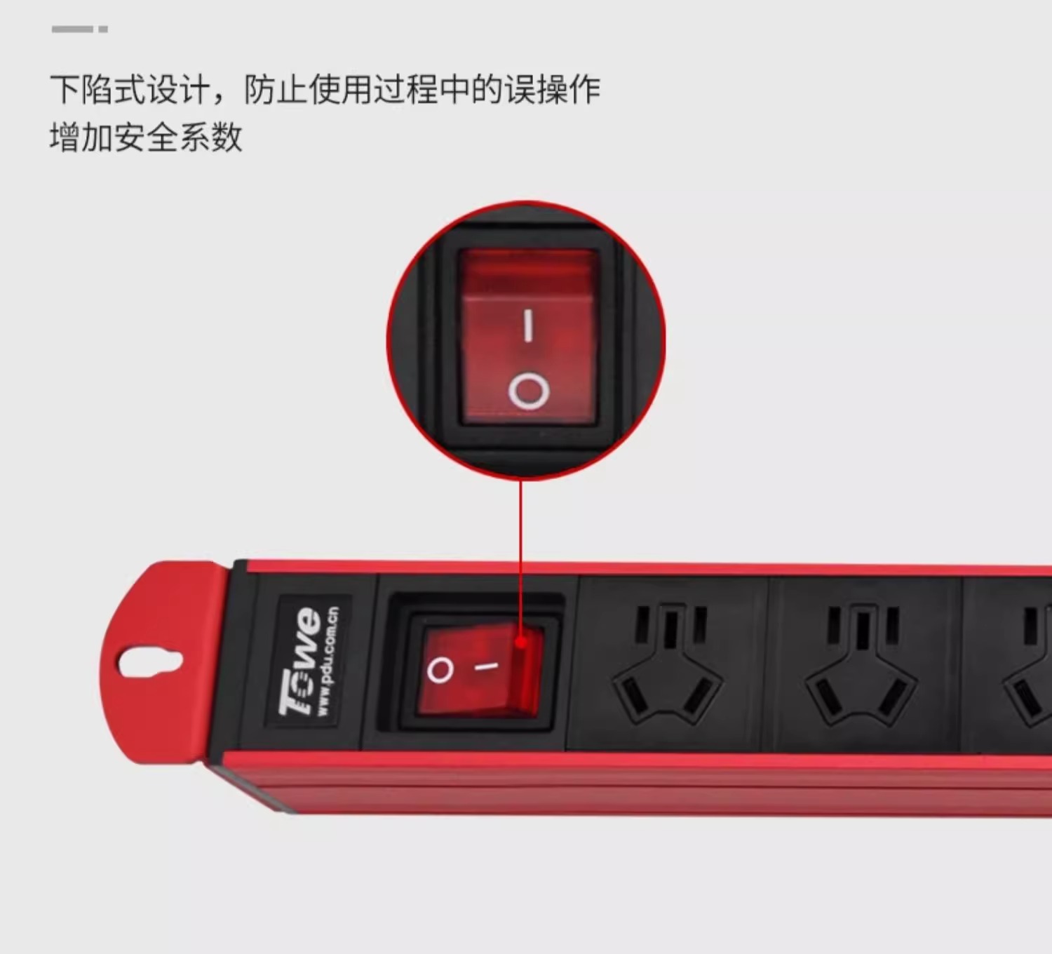 TOWE同为高端pdu机柜插座10A分控单开单控工业工程插排 炫彩豪华高端系列 分控炫彩PDU插座 6位10A单开单控新国标五孔,EN10/C66K中国红