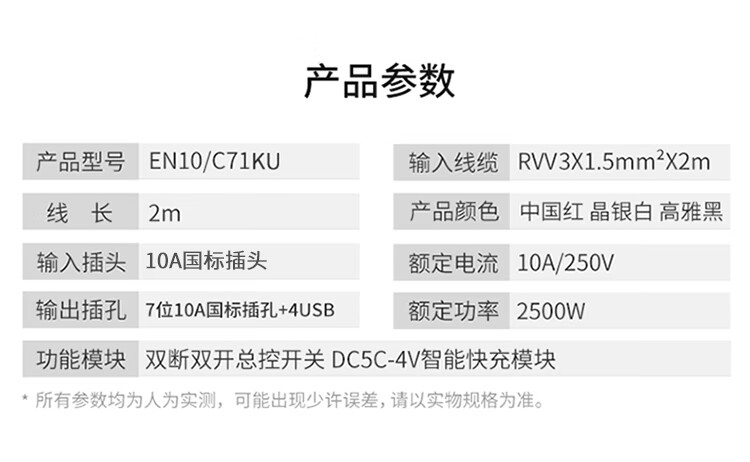 TOWE同为高端pdu机柜插座10A总控双开双断工业工程插排 炫彩豪华高端系列 总控USB炫彩PDU插座 7位10A新国标五孔,EN10/C71KU中国红