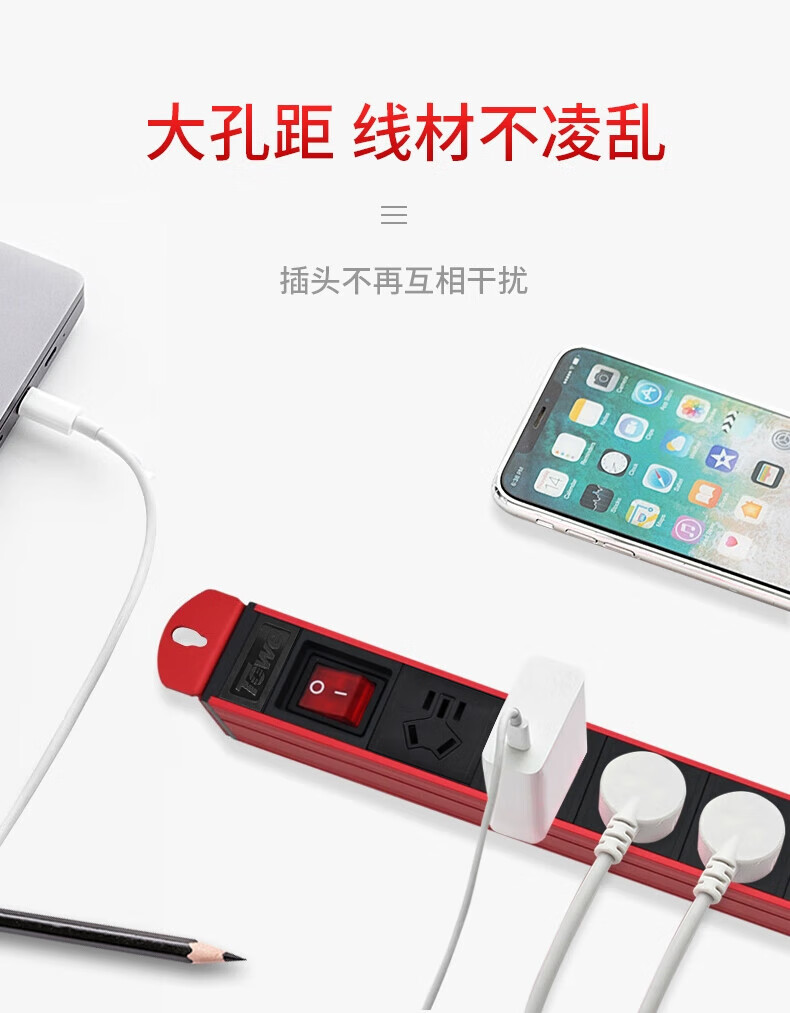TOWE同为高端pdu机柜插座10A总控防雷防浪涌工业工程插排 炫彩豪华高端系列 总控防雷炫彩PDU插座 7位10A新国标五孔,EN10/C71KS中国红