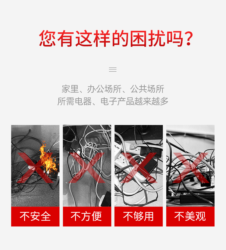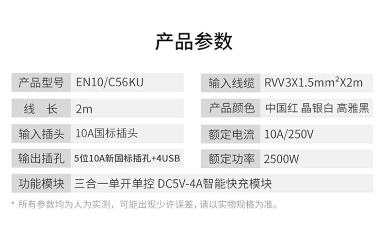 TOWE同为高端pdu机柜插座10A分控单开单控带USB供电工业工程插排 炫彩系列 分控USB炫彩PDU插座 5位10A新国标五孔,EN10/C56KU中国红
