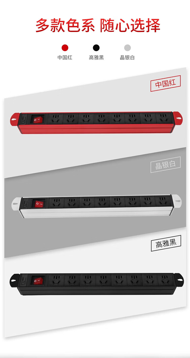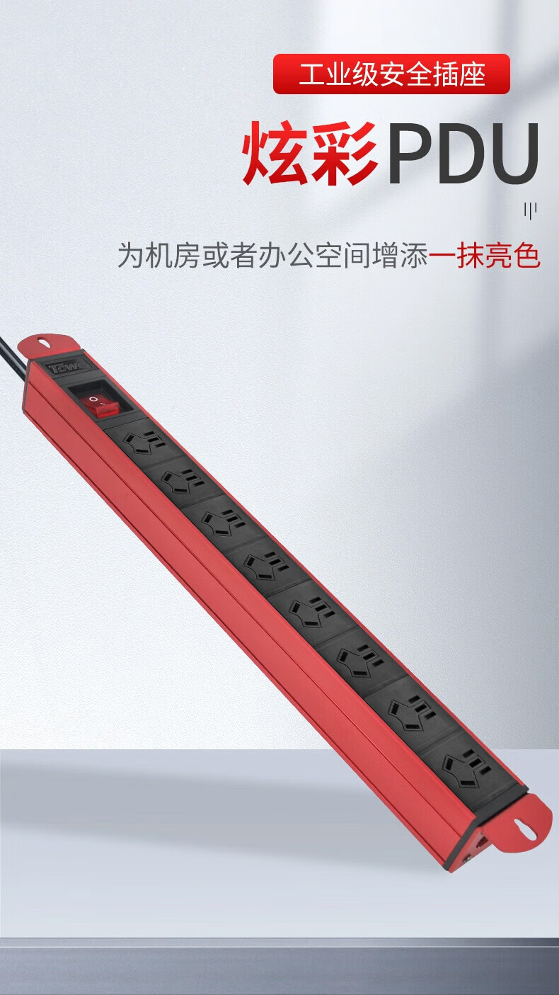 TOWE同为高端pdu机柜插座10A总控防雷防浪涌工业工程插排 炫彩豪华高端系列 总控防雷炫彩PDU插座 7位10A新国标五孔,EN10/C71KS中国红