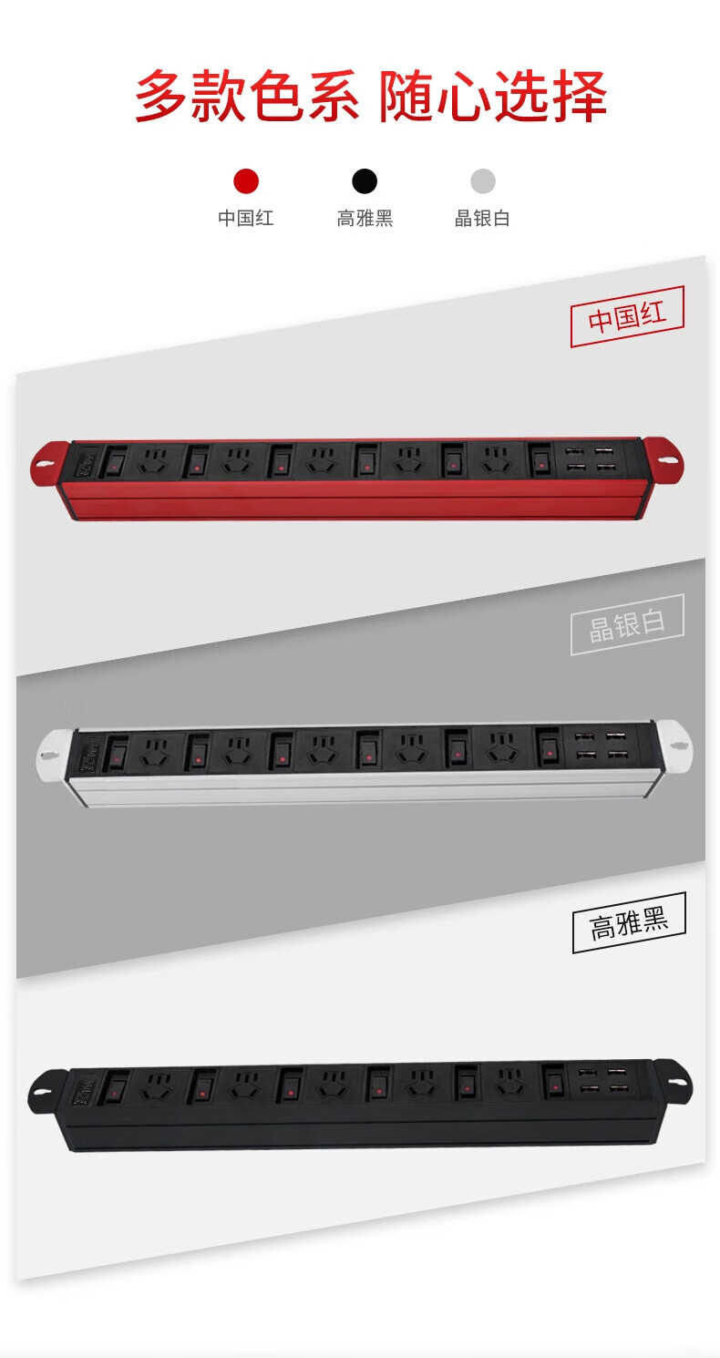 TOWE同为高端pdu机柜插座10A总控双开双断工业工程插排 炫彩豪华高端系列 总控USB炫彩PDU插座 7位10A新国标五孔,EN10/C71KU中国红