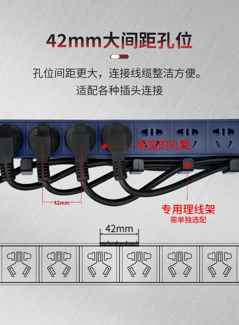 TOWE同为7位8位10A pdu电源机柜插座 10A国标三孔五孔PDU插座电源分配器 带总控开关 灰蓝色超值款PDU插座 8位10A国标五孔,EN10/G805G