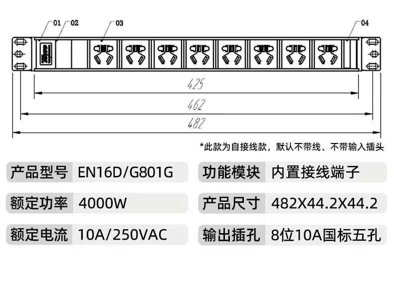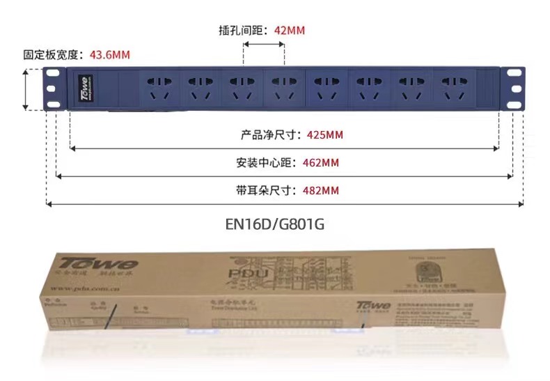 TOWE同为7位8位10A pdu电源机柜插座 10A国标三孔五孔PDU插座电源分配器 带总控开关 灰蓝色超值款PDU插座 8位国标五孔10A,EN16D/G801G