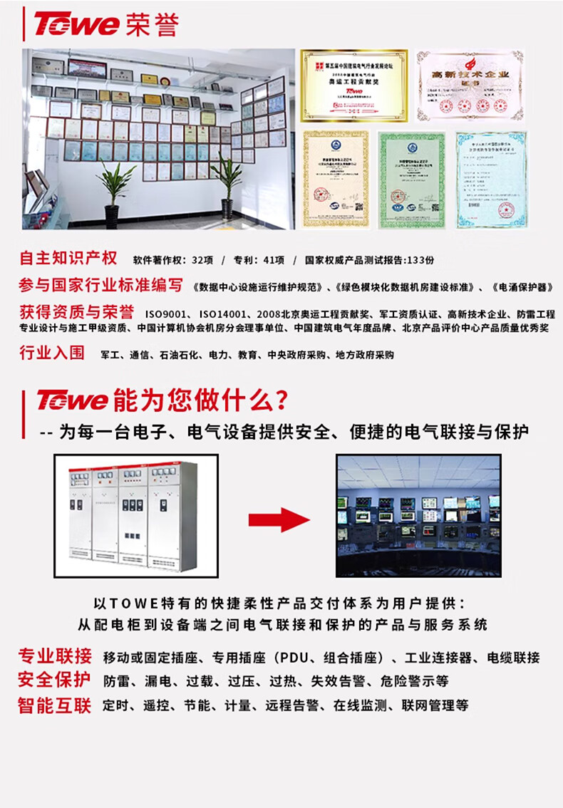 TOWE同为高端pdu机柜插座10A总控防雷防浪涌工业工程插排 炫彩豪华高端系列 总控防雷炫彩PDU插座 7位10A新国标五孔,EN10/C71KS中国红