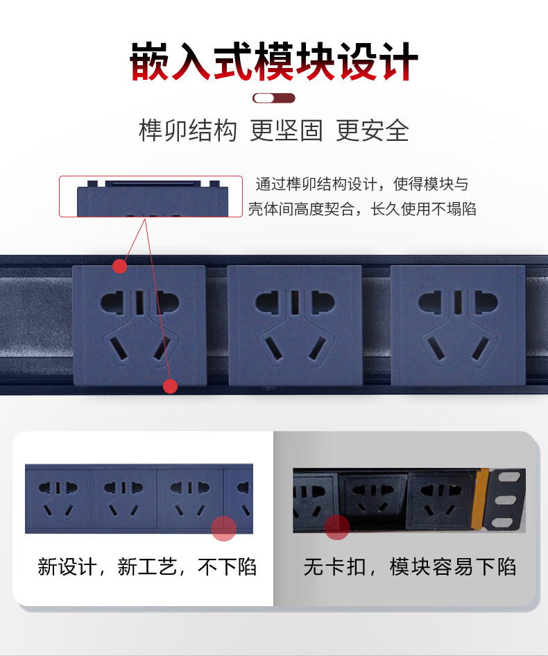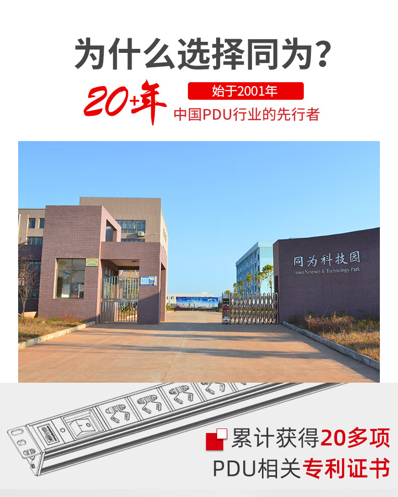 TOWE同为高端pdu机柜插座10A总控防雷防浪涌工业工程插排 炫彩豪华高端系列 总控防雷炫彩PDU插座 7位10A新国标五孔,EN10/C71KS中国红