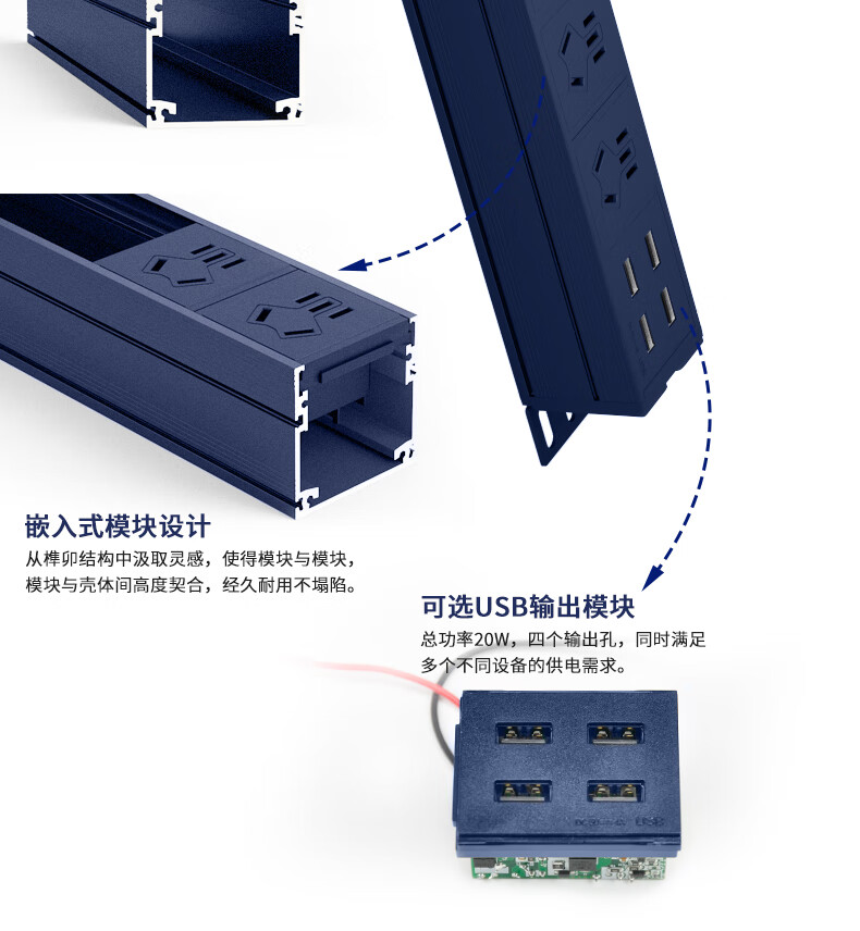 TOWE同为高端pdu机柜插座10A分控单开单控带USB供电工业工程插排 炫彩系列 分控USB炫彩PDU插座 5位10A新国标五孔,EN10/C56KU晶银白