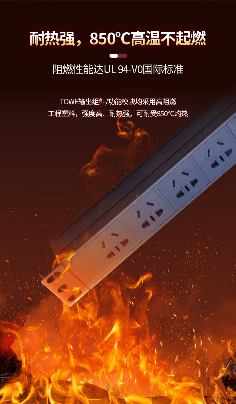 TOWE同为高端pdu机柜插座10A总控防雷防浪涌工业工程插排 炫彩豪华高端系列 总控防雷炫彩PDU插座 7位10A新国标五孔,EN10/C71KS中国红