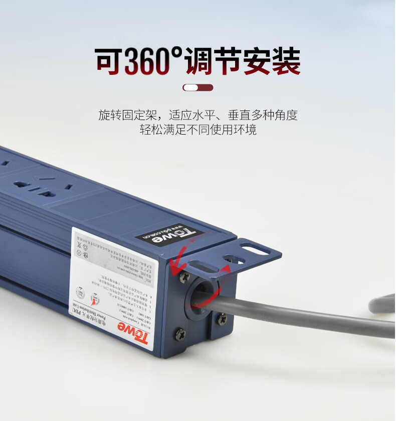 TOWE同为7位8位10A pdu电源机柜插座 10A国标三孔五孔PDU插座电源分配器 带总控开关 灰蓝色超值款PDU插座 8位国标五孔10A,EN16D/G801G