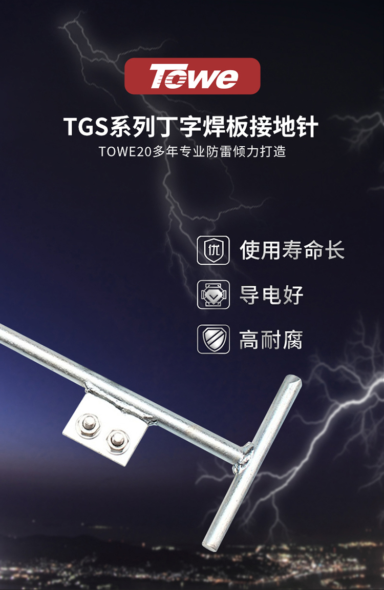 TOWE同为接地系统产品镀锌电力接地丁字焊板接地针经济型接地棒接地极 TGS-GF16/15 TGS-GF16/10