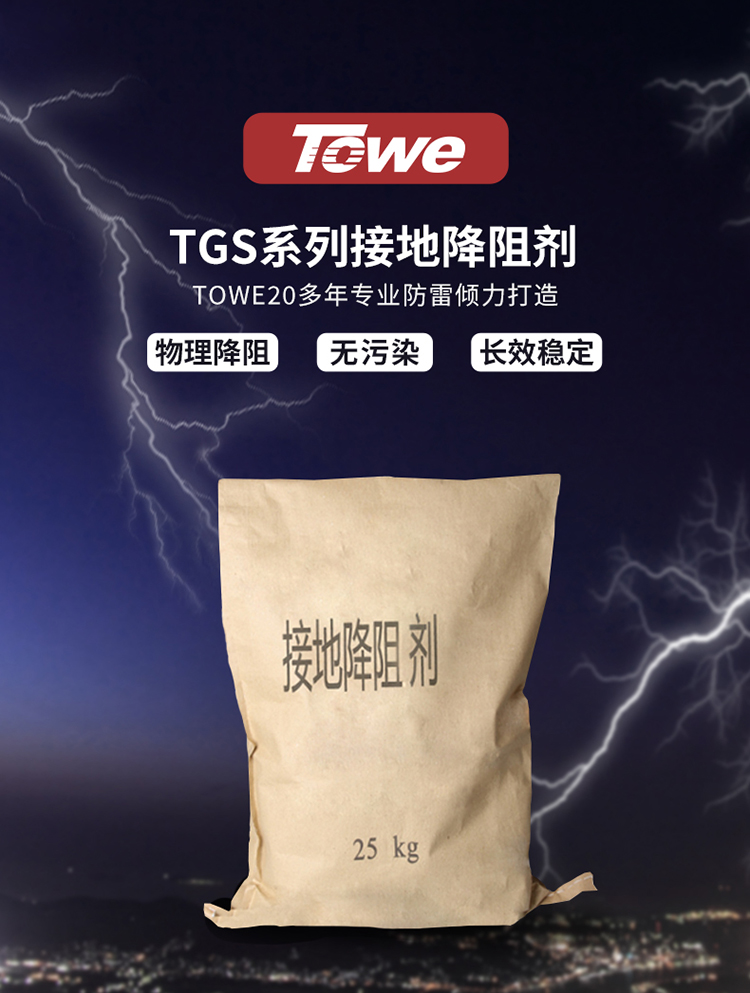 TOWE同为接地系统产品高性能高效长效接地降阻剂有效降低接地电阻用于电网变电站、高铁地铁、大型化工厂、风力光伏、通信铁塔、交通、石化、机房、高速公路、军事基地、银行等防雷接地 TGS-GR25