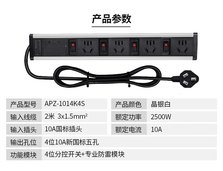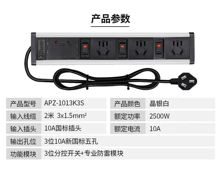TOWE同为专业防雷防浪涌桌面pdu插排插座新国标三位四位五位六位三合一总控工业插座摔不烂高强度铝合金阳极氧化外壳插座 商务办公、高端家用 APZ-1013S/APZ-1014S/APZ-1026S