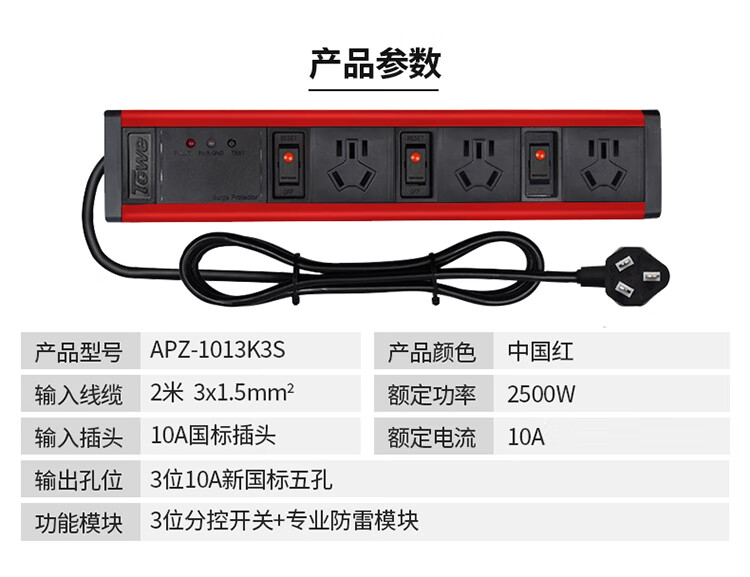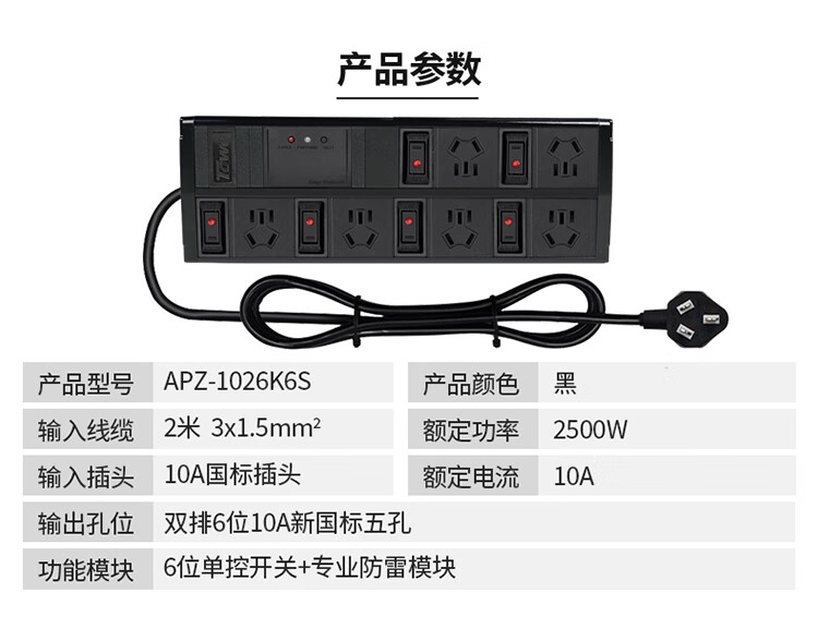 TOWE同为工业级防雷防浪涌桌面PDU插座新国标三位四位六位三合一单开单控工业插座 摔不烂高强度铝合金阳极氧化外壳插座 APZ-1013K3S/APZ-1014K4S/APZ-1026K6S
