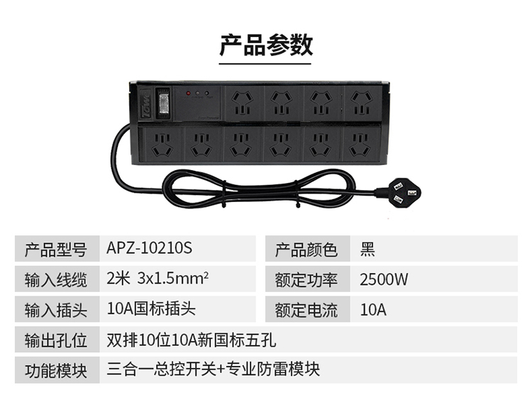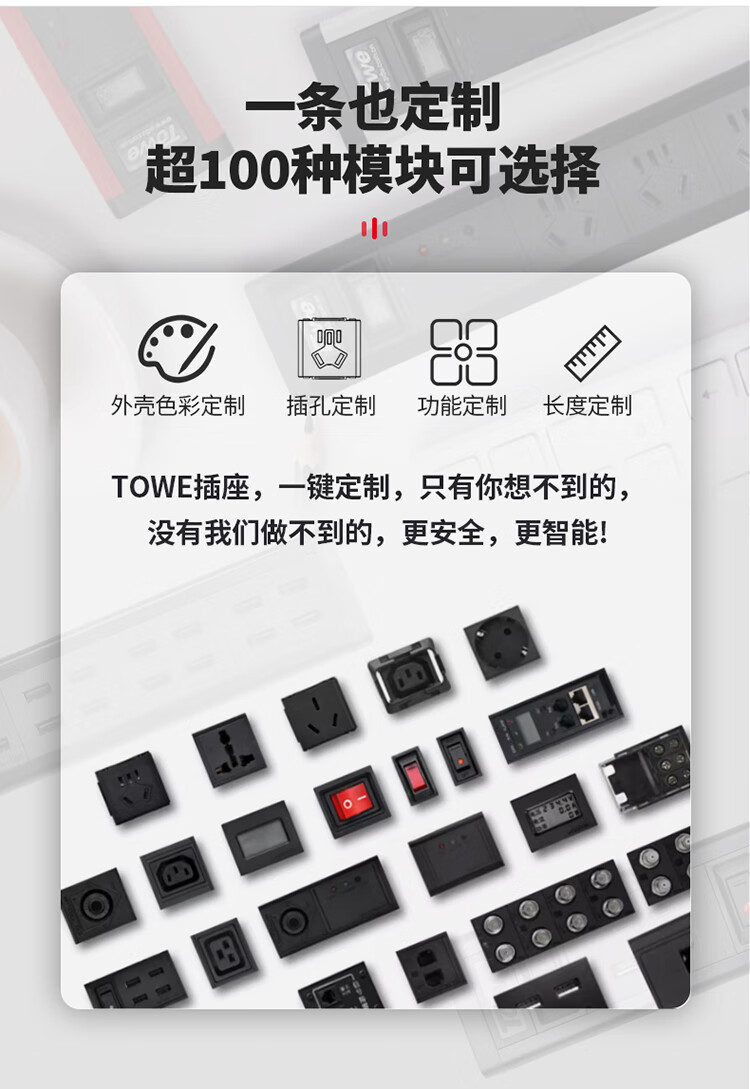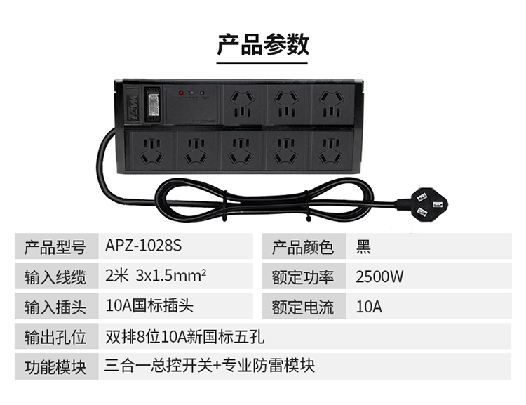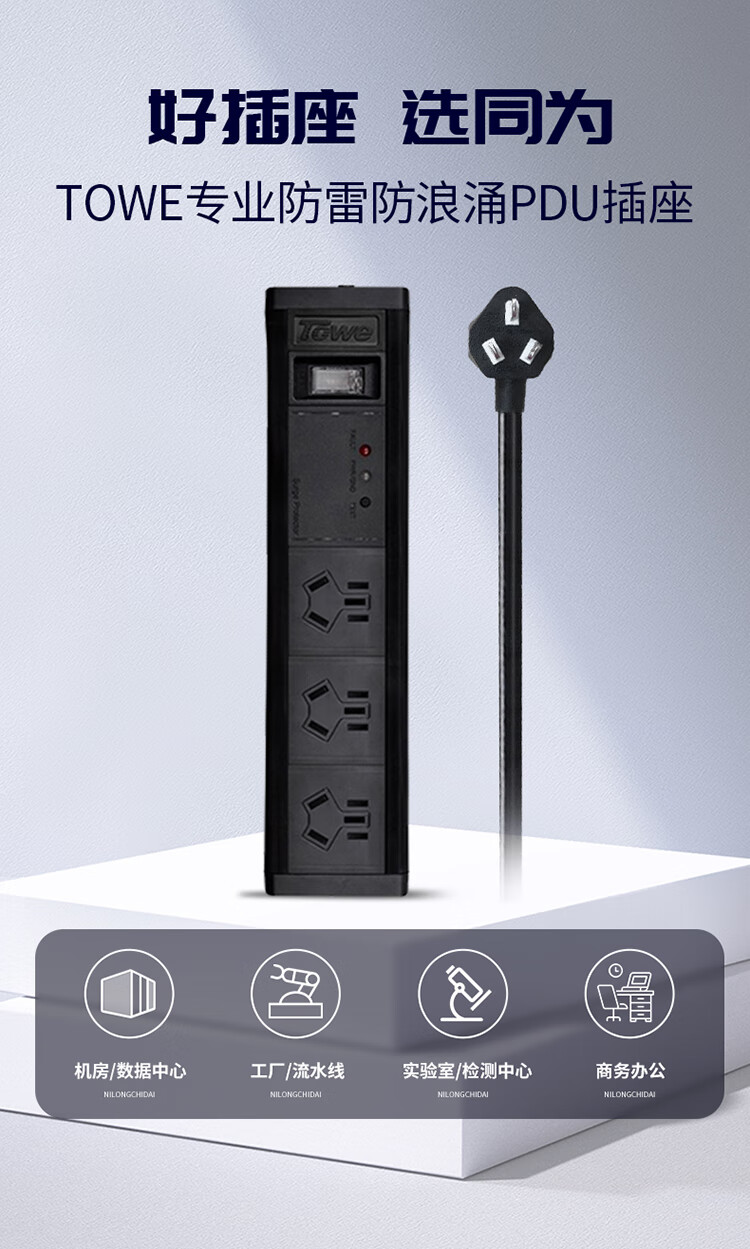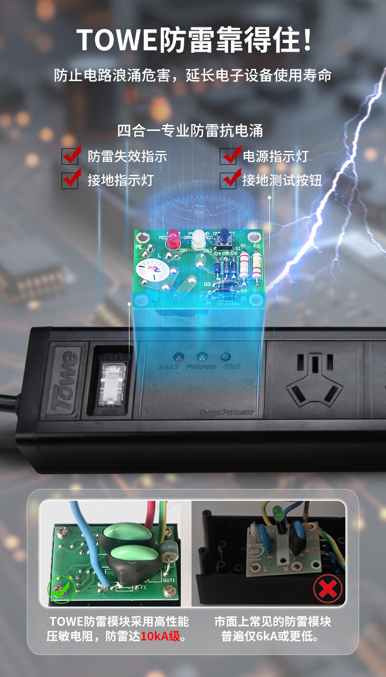 TOWE同为专业防雷防浪涌桌面pdu插排插座新国标三位四位五位六位三合一总控工业插座摔不烂高强度铝合金阳极氧化外壳插座 商务办公、高端家用 APZ-1013S/APZ-1014S/APZ-1026S