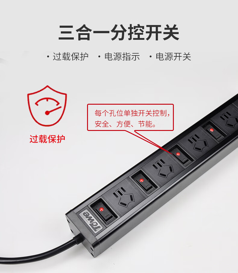 TOWE同为工业级防雷防浪涌桌面PDU插座新国标三位四位六位三合一单开单控工业插座 摔不烂高强度铝合金阳极氧化外壳插座 APZ-1013K3S/APZ-1014K4S/APZ-1026K6S
