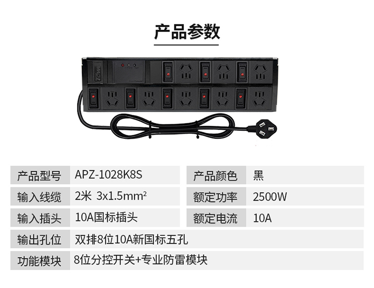 TOWE同为工业级防雷防浪涌桌面PDU插座四合一防雷模块三合一开关摔不烂高强度铝合金阳极氧化外壳插座 APZ-1028S/APZ-10210S/APZ-1028K8S