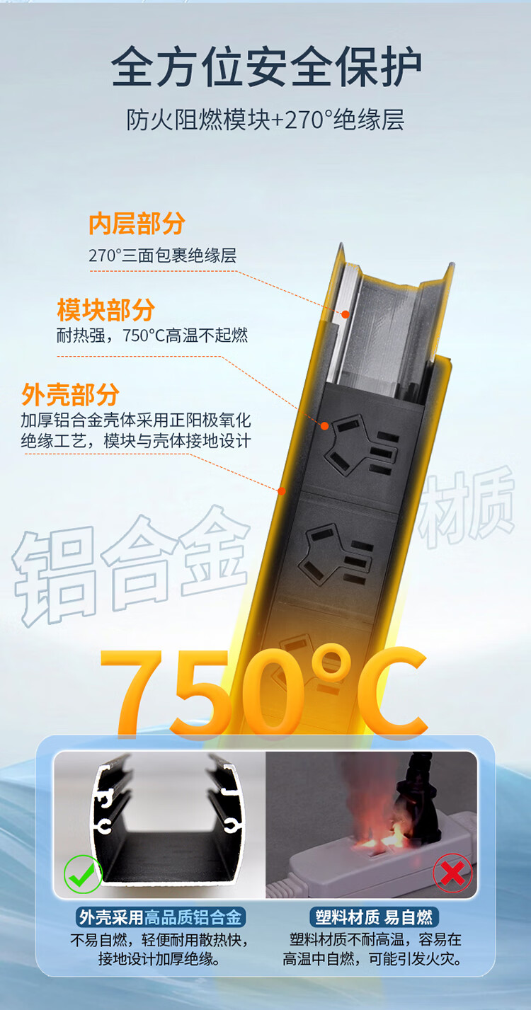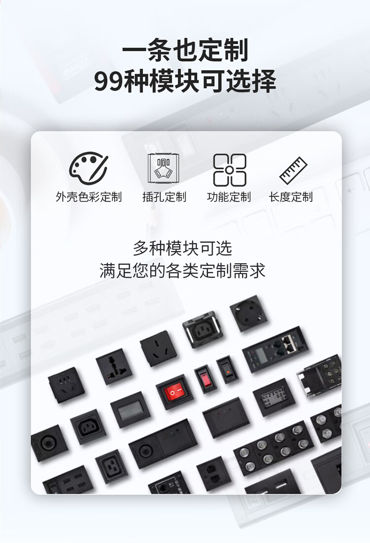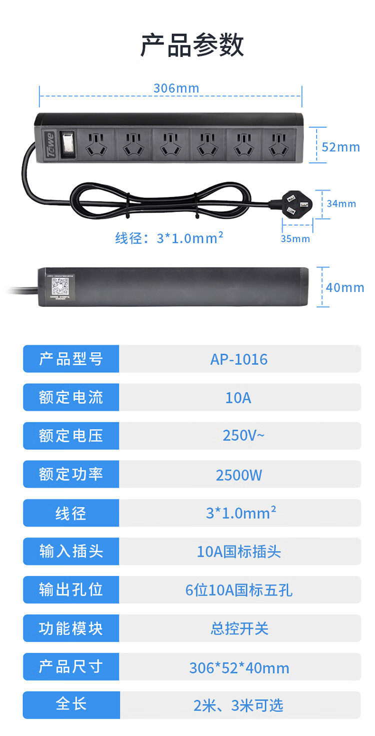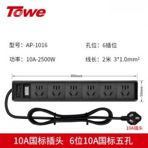 AP-1016 6位10A新国标五孔+总控开关+2米3*1.0平方线带10A国标插头
