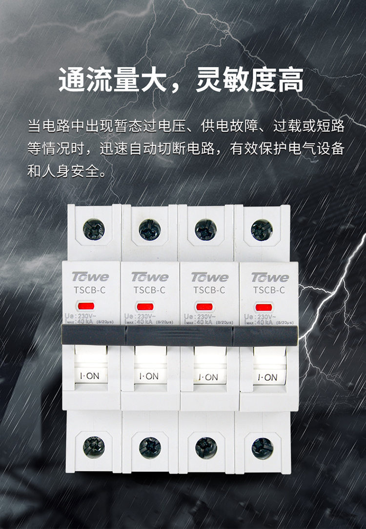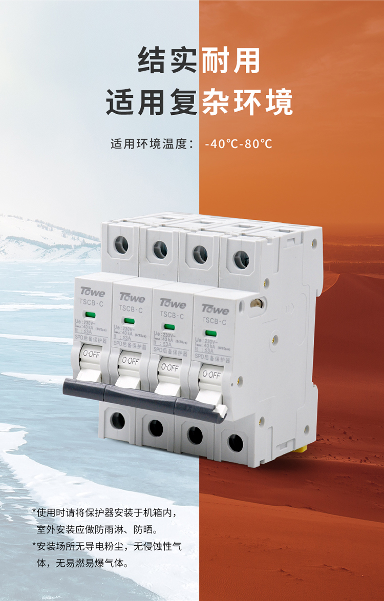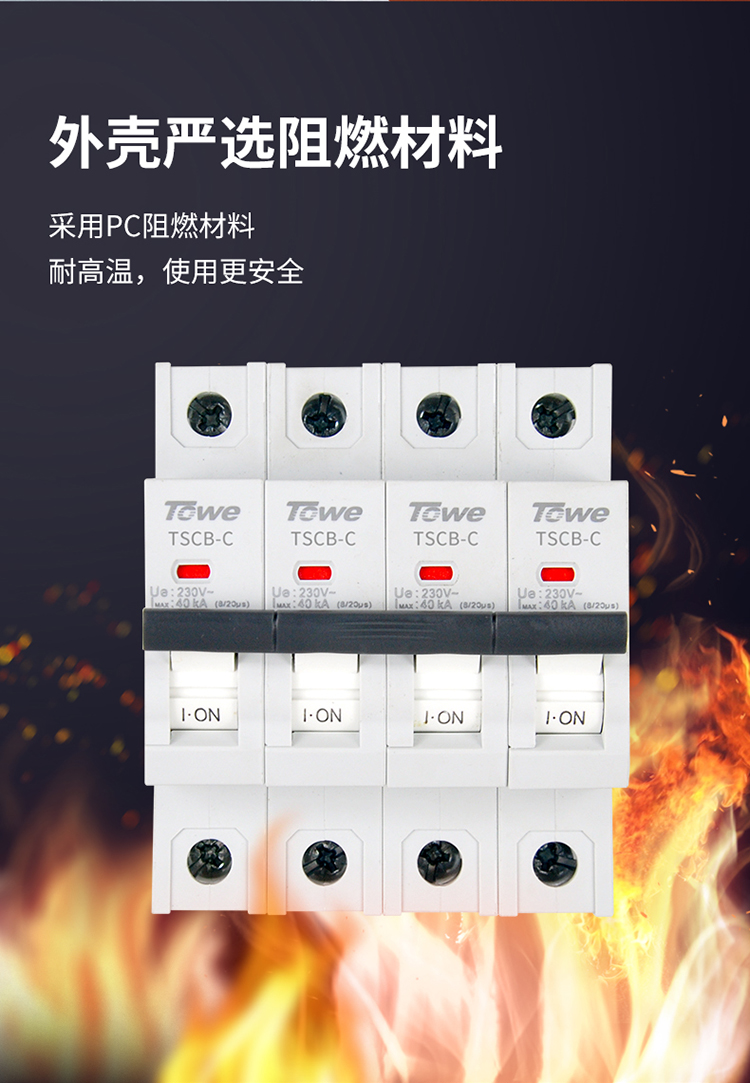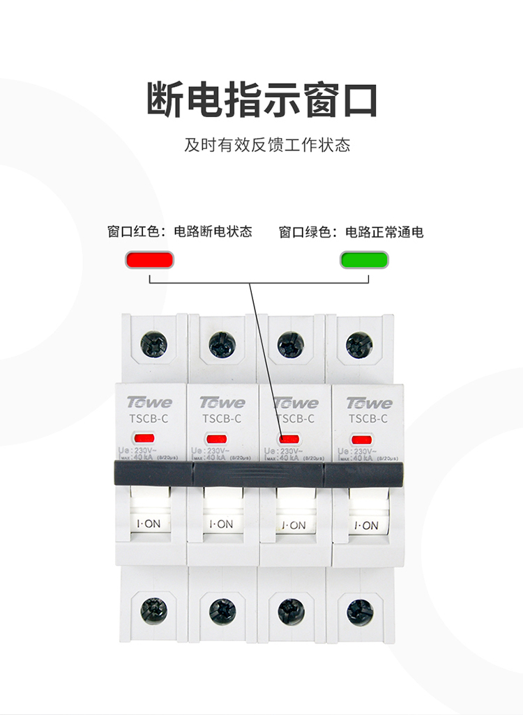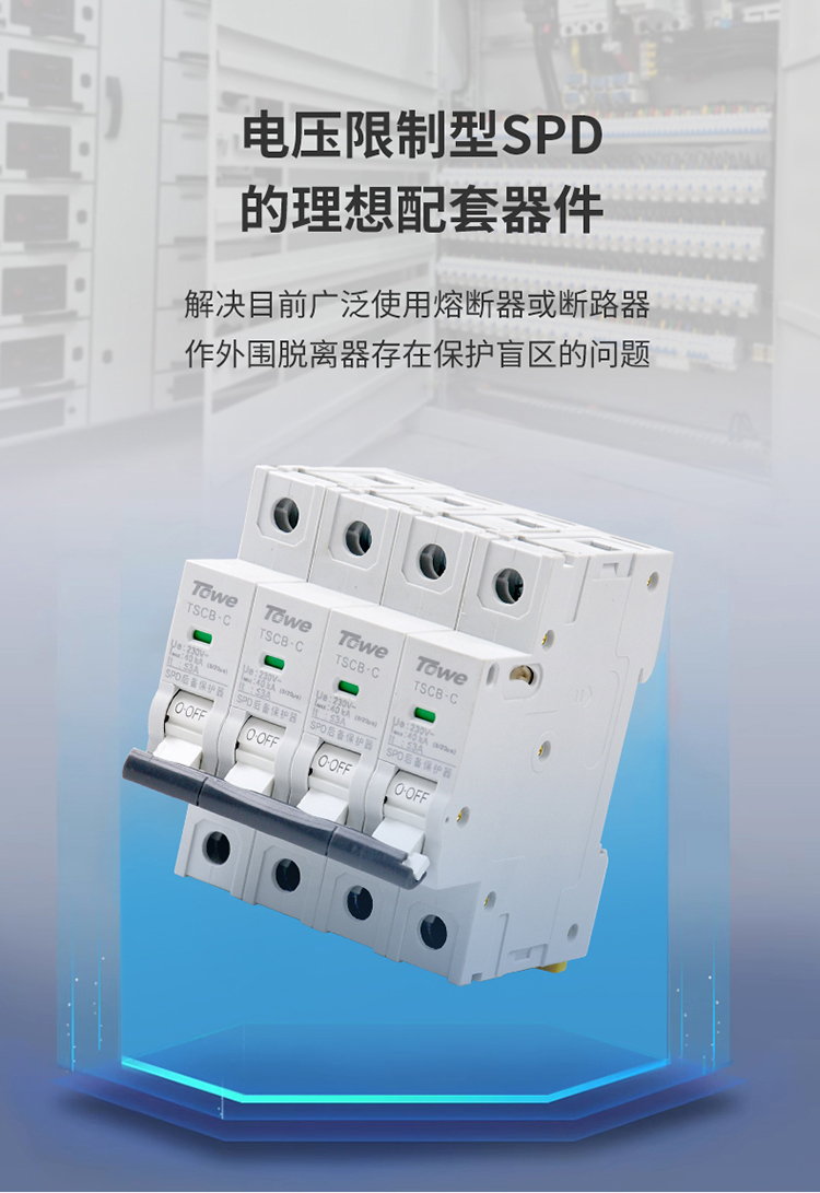 TOWE同为SCB后备保护器确保浪涌保护器(SPD)不起火、设备防雷持续有效有效克服目前广泛使用熔断器或断路器做外置脱离器存在的保护盲区问题 TSCB-A/B/C 2P/4P