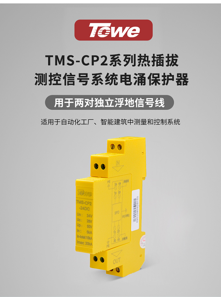 TOWE同为CP系列超薄测控信号系统电涌保护器 测控信号系统导轨安装式电涌保护器防雷器 两对浮地信号线保护 TMS-CP2-5DC/12DC/12AC/24DC/24AC