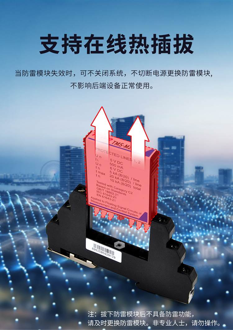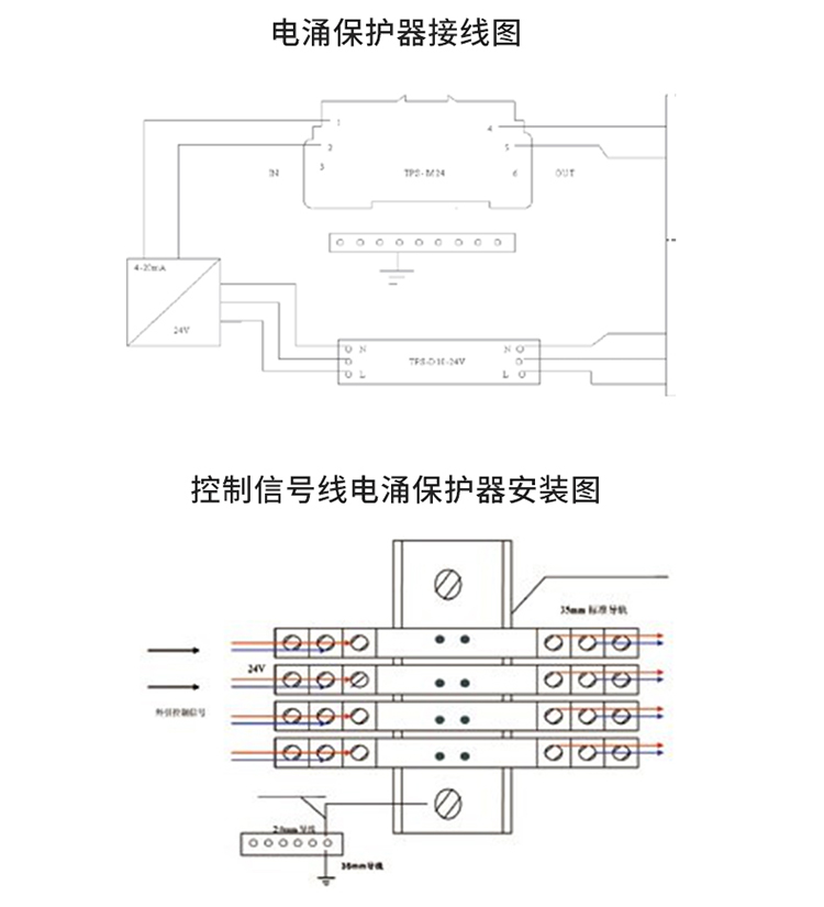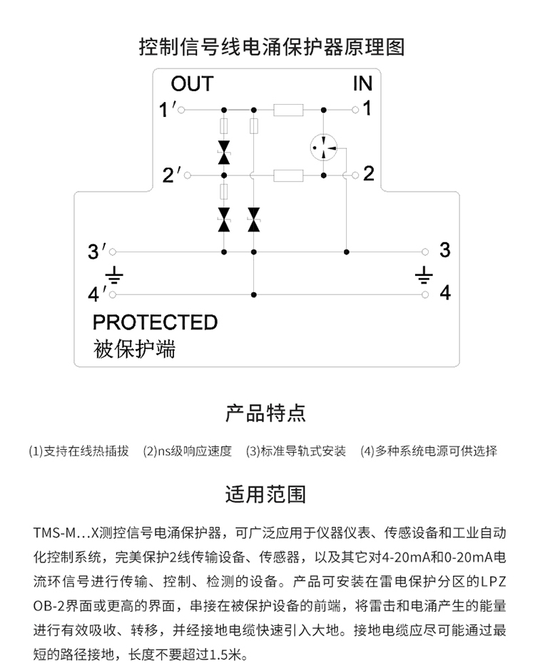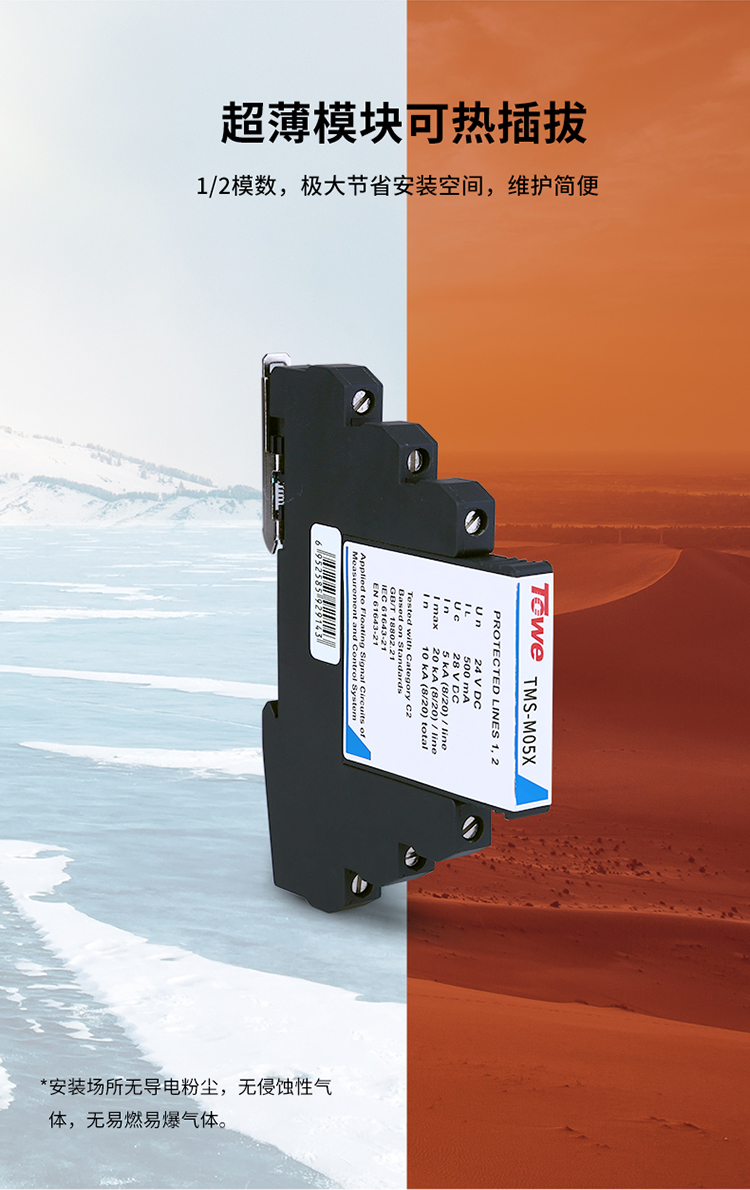TOWE同为M系列超薄测控信号系统电涌保护器 适用热电偶 4-20A仪表回路 停车系统和火焰 气体探测器等各种应用 TMS-M05/TMS-M12/TMS-M24/TMS-M48