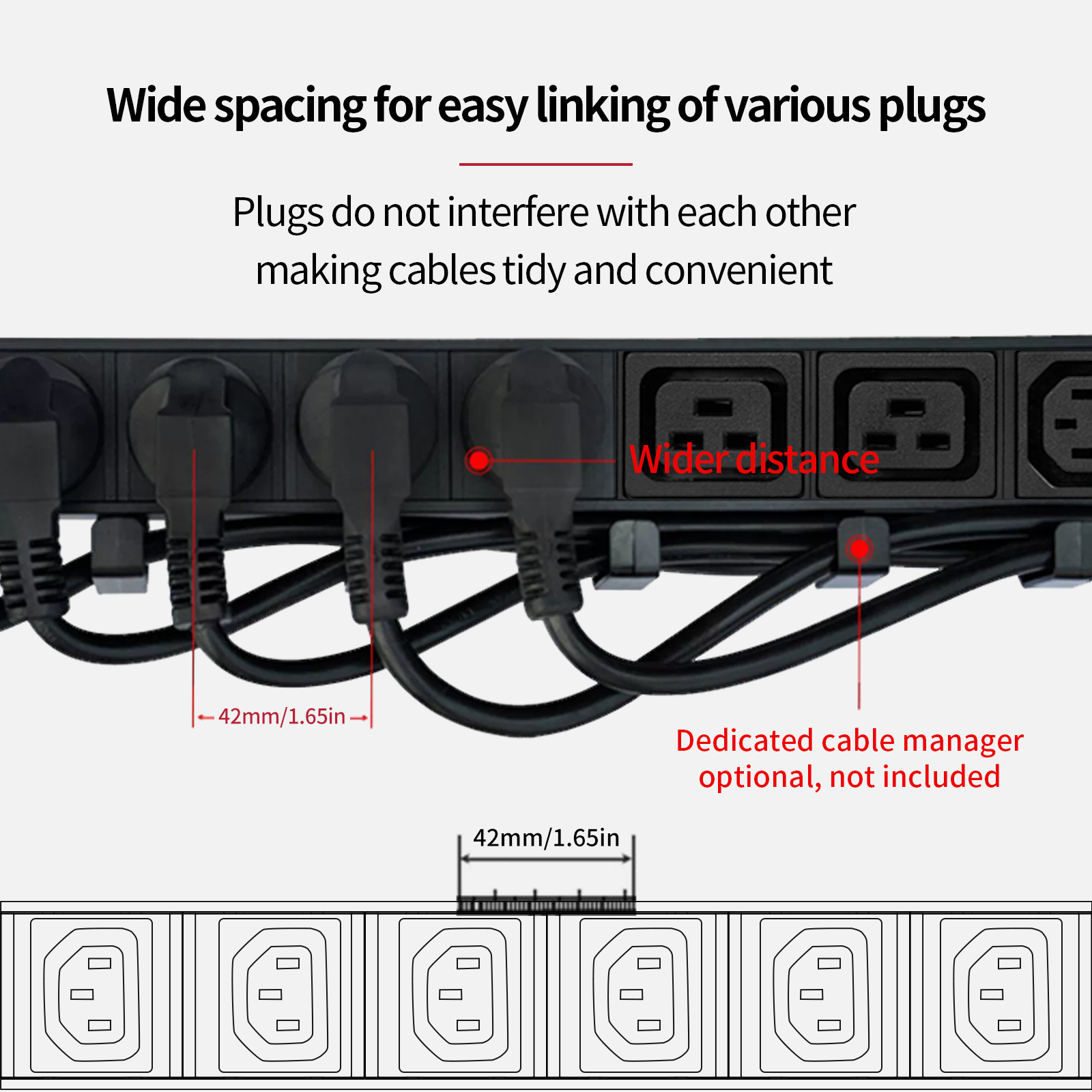 TOWE同为32A大功率自接线PDU 输出国标10A16A 12位pdu电源机柜插座 国标竖装4平加粗线缆 2位国标16A +10位10A国标多用孔,EN32/GW1204