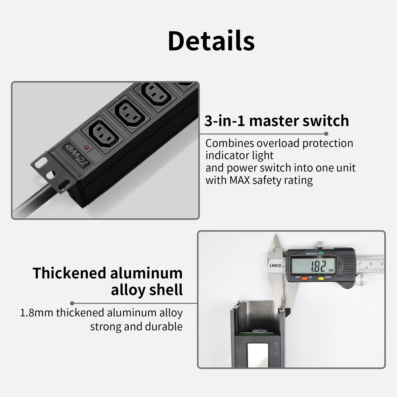 TOWE同为输入国标16A竖装垂直安装pdu工业安全机柜插座 输出国标10A IDC机房数据 12位国标16A竖装基础款 12位10A国标三孔,EN16/G1209