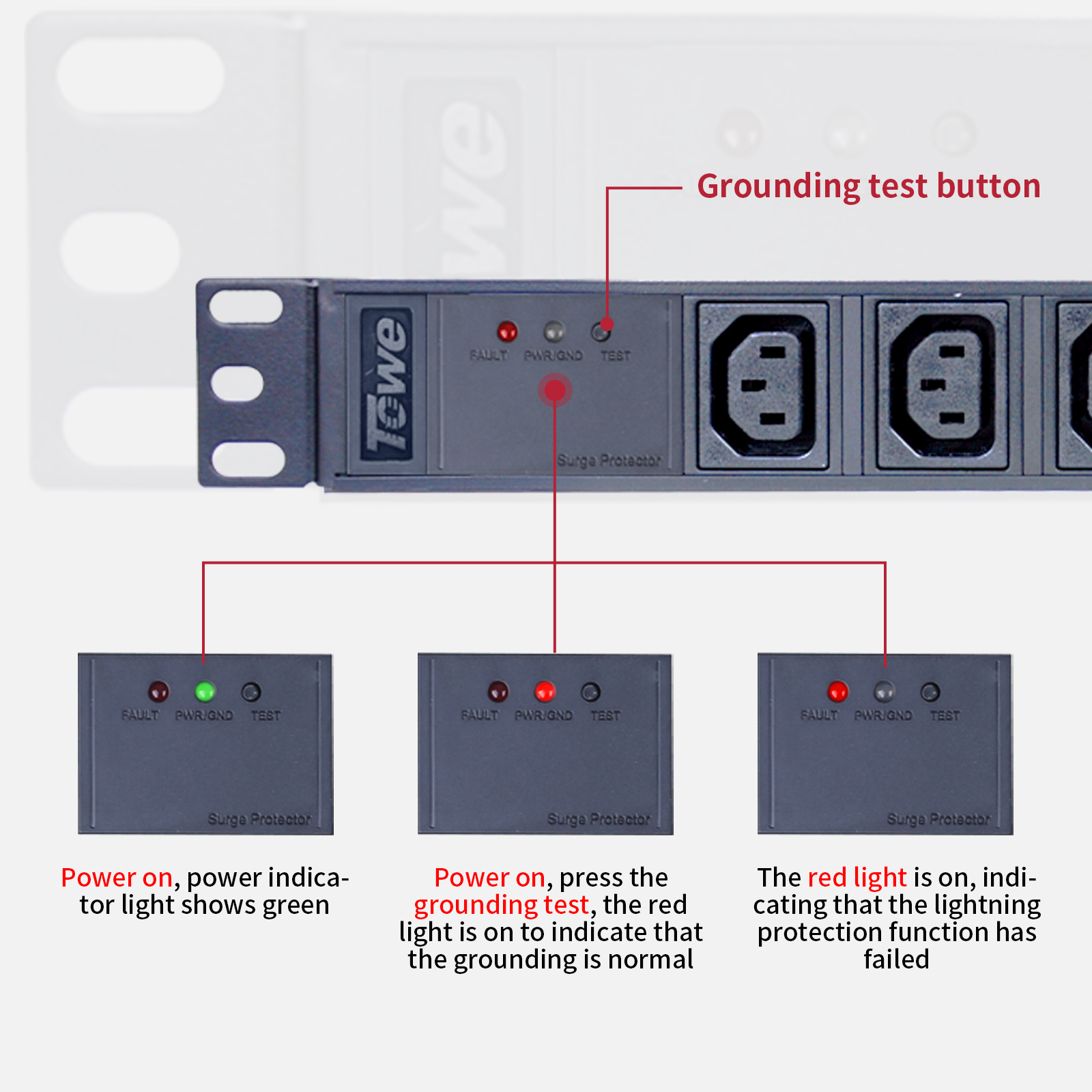 TOWE同为国标竖装工业三级防雷大功率PDU安全机柜插座 SPD防浪涌防电涌 国标竖装专业防雷 2位国标16A+10位国标三孔10A,EN32/G1206S