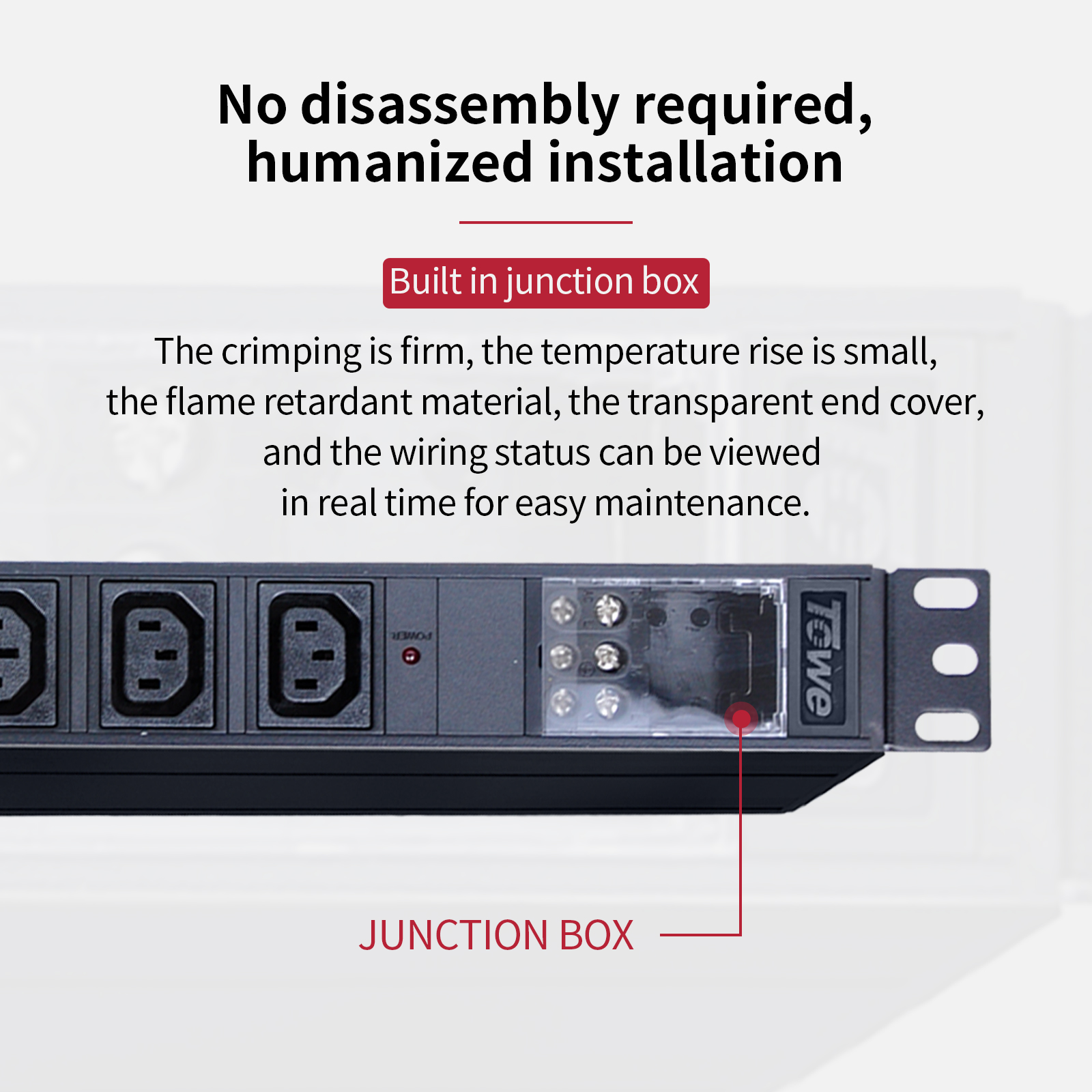 TOWE同为63A超大功率自接线PDU机柜插座 工程安全pdu插座插排 国标竖装6平加粗线缆 4位国标16A+20位国标三孔10A,EN32/G2402