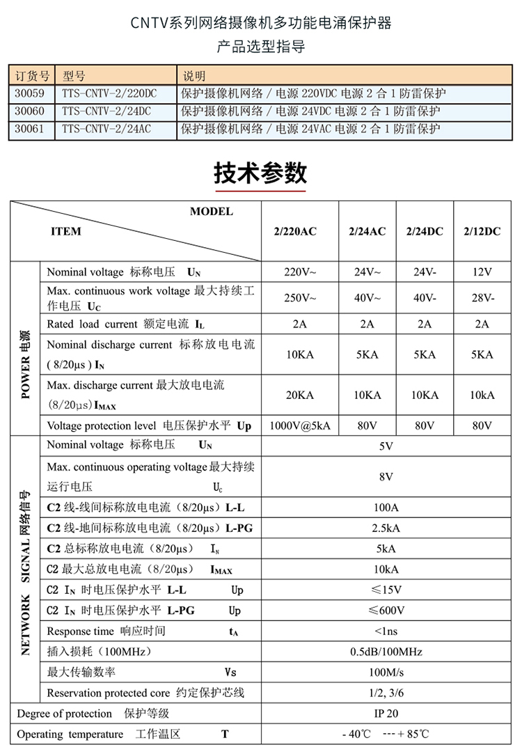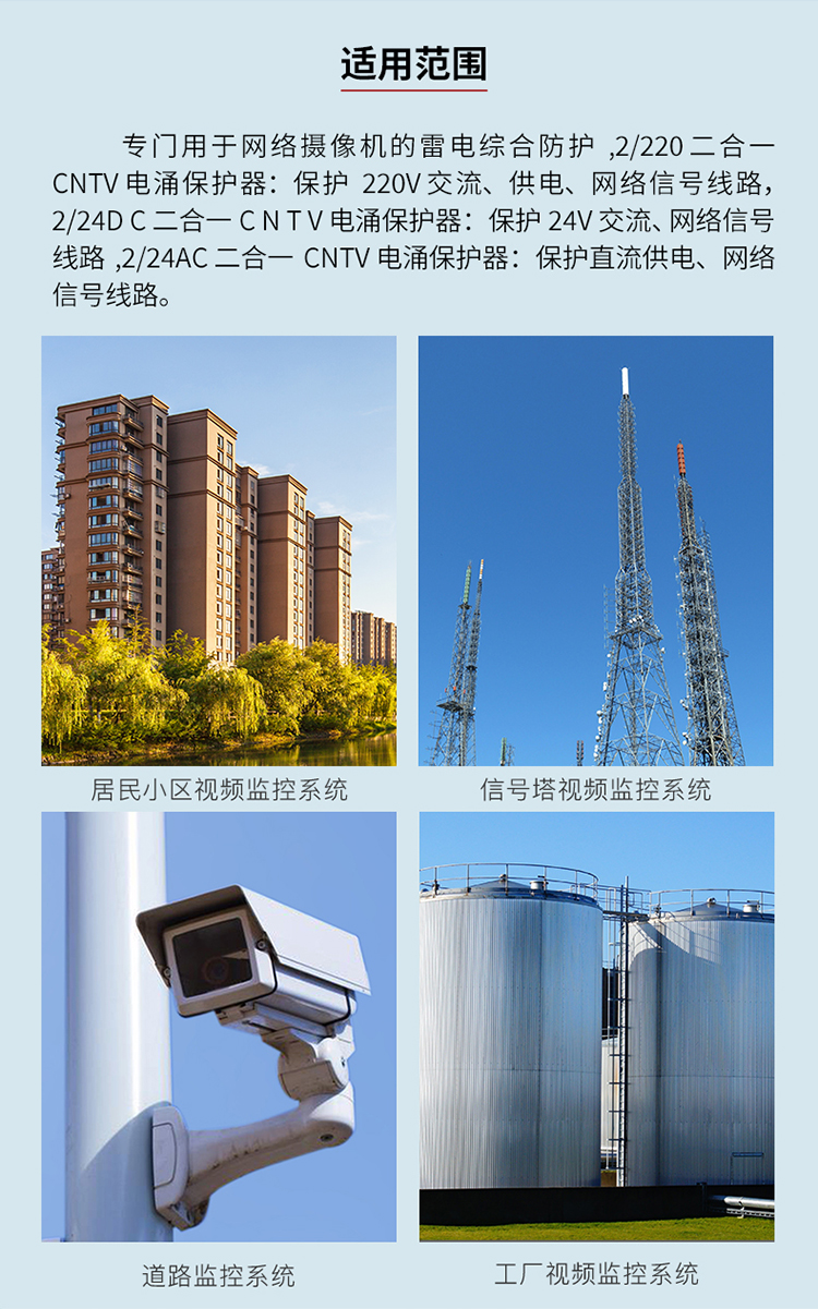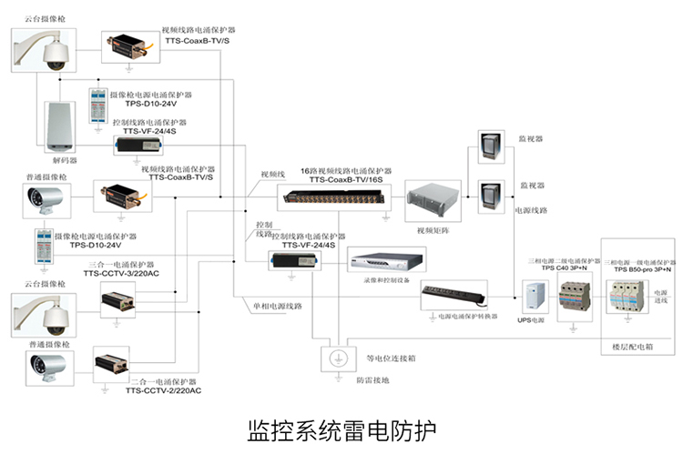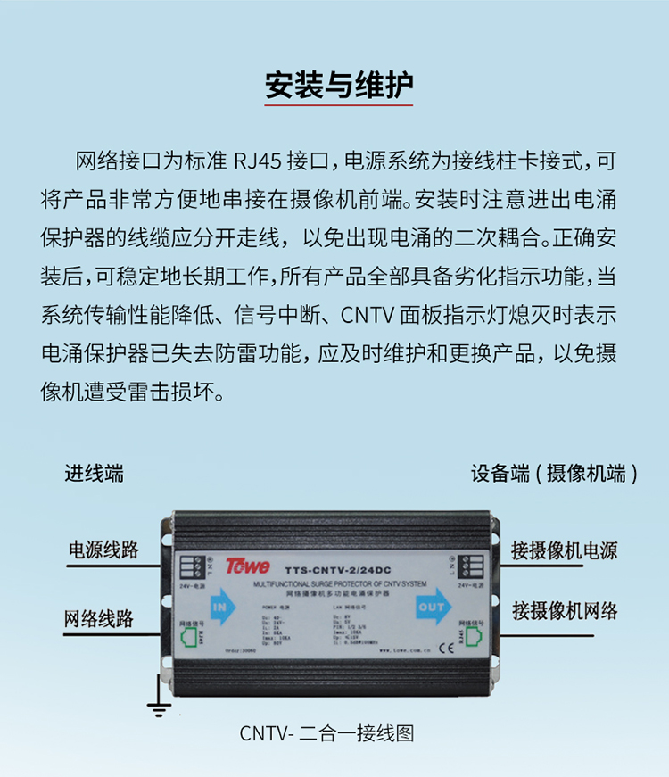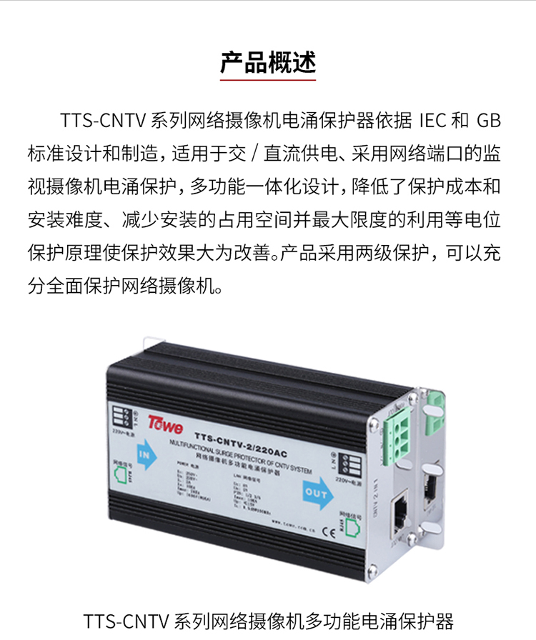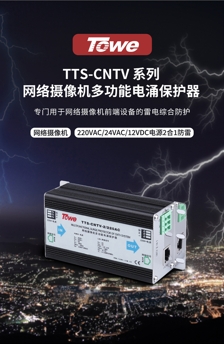TOWE同为CNTV视频监控系统电涌保护器平安城市智慧城市雪亮工程天网工程中摄像机、云台、解码器等前端设备或监控机房的电源、视频、网络以及控制信号进行保护TTS-CNTV-AC/DC