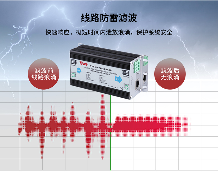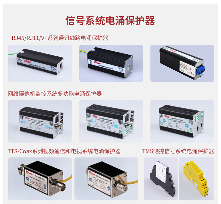 TOWE同为CCTV视频监控系统电涌保护器平安城市智慧城市雪亮工程天网工程中摄像机、云台、解码器等前端设备或监控机房的电源、视频、网络以及控制信号进行保护TTS-CCTV-AC/DC