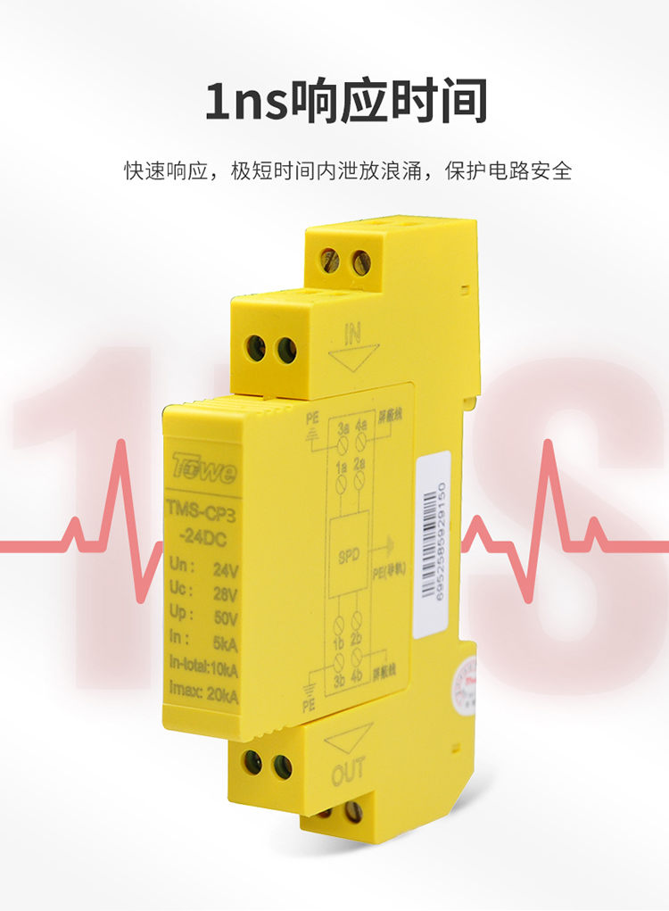 TOWE同为CP系列超薄测控信号系统电涌保护器 测控信号系统导轨安装式电涌保护器防雷器 有共用参考电位的四线信号保护 TMS-CP4-5DC/12DC/12AC/24DC/24AC/48DC