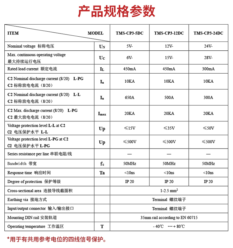 TOWE同为CP系列超薄测控信号系统电涌保护器 测控信号系统导轨安装式电涌保护器防雷器 三/四线浮地信号保护 TMS-CP3-5DC/TMS-CP3-12DC/TMS-CP3-12AC