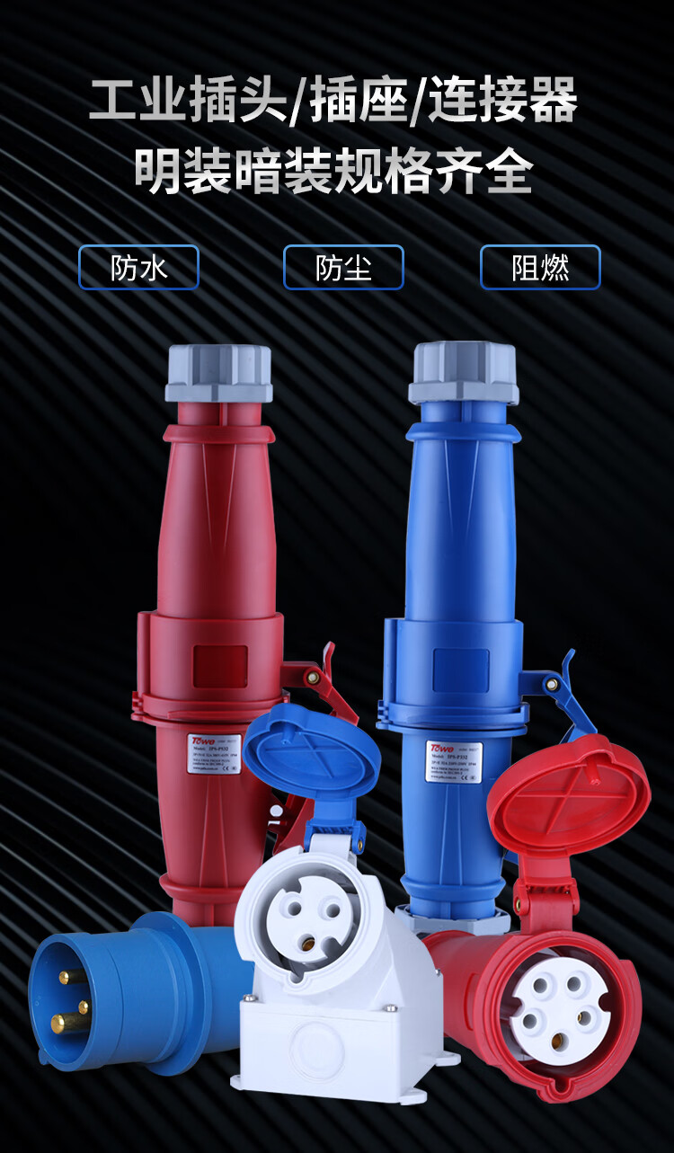 TOWE同为IP44防溅防泼CEE/IEC工业插头工业连接器63A3芯2P+E 4芯3P+E 5芯3P+N+E防水、防尘、防潮、防腐 IPS-P363/S363/P463/S463/P563/S563