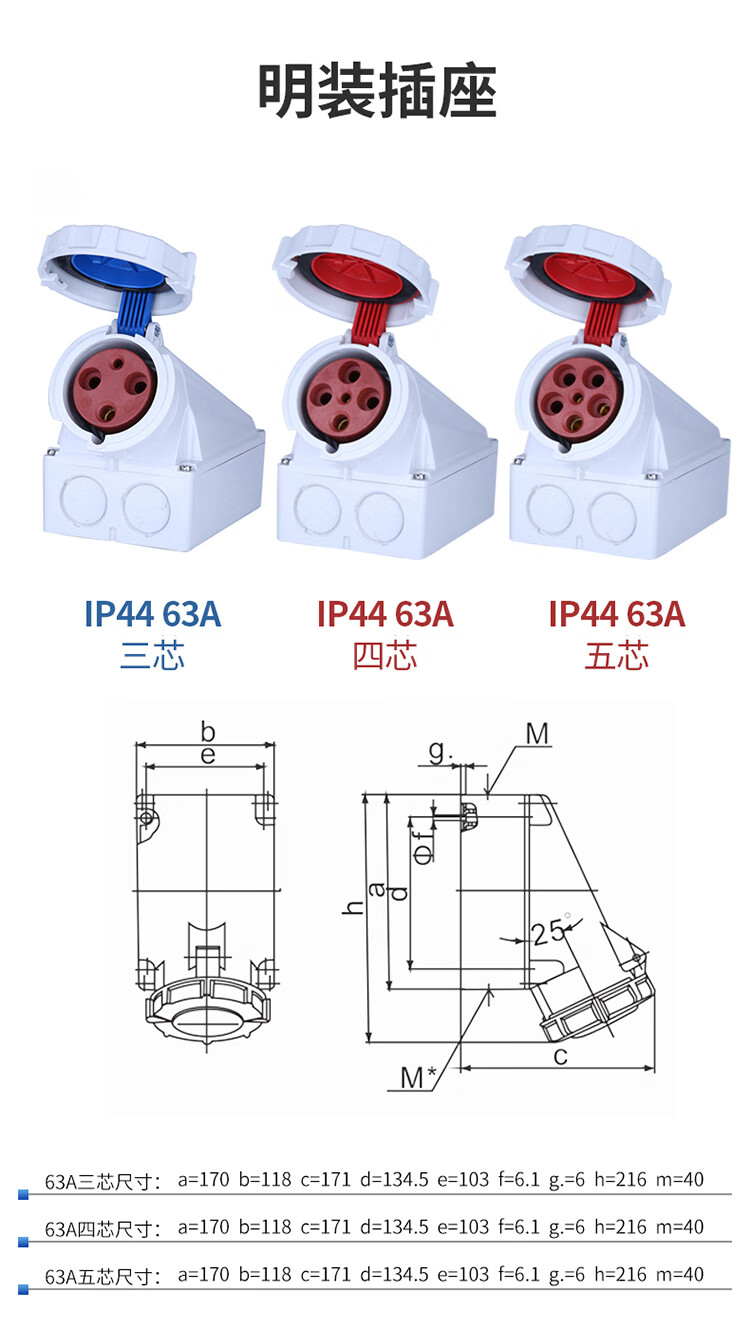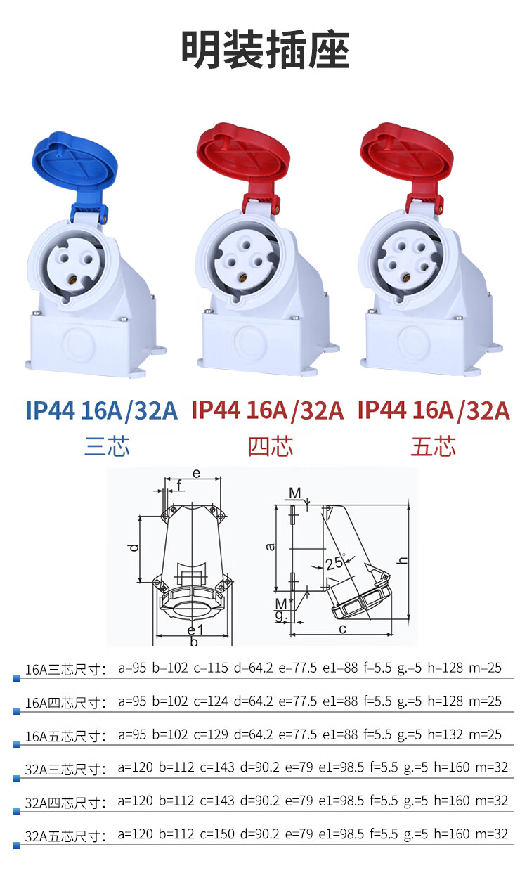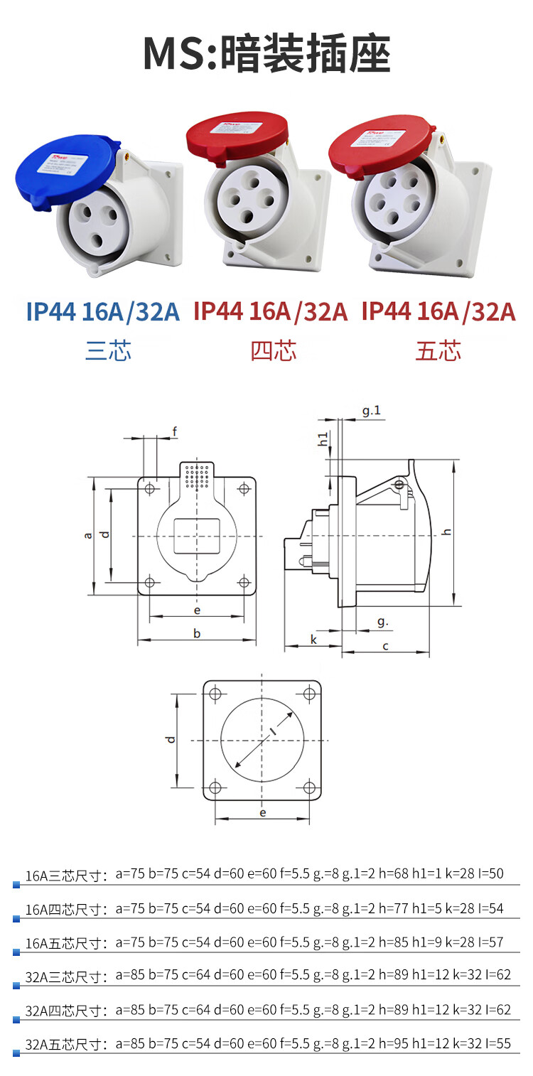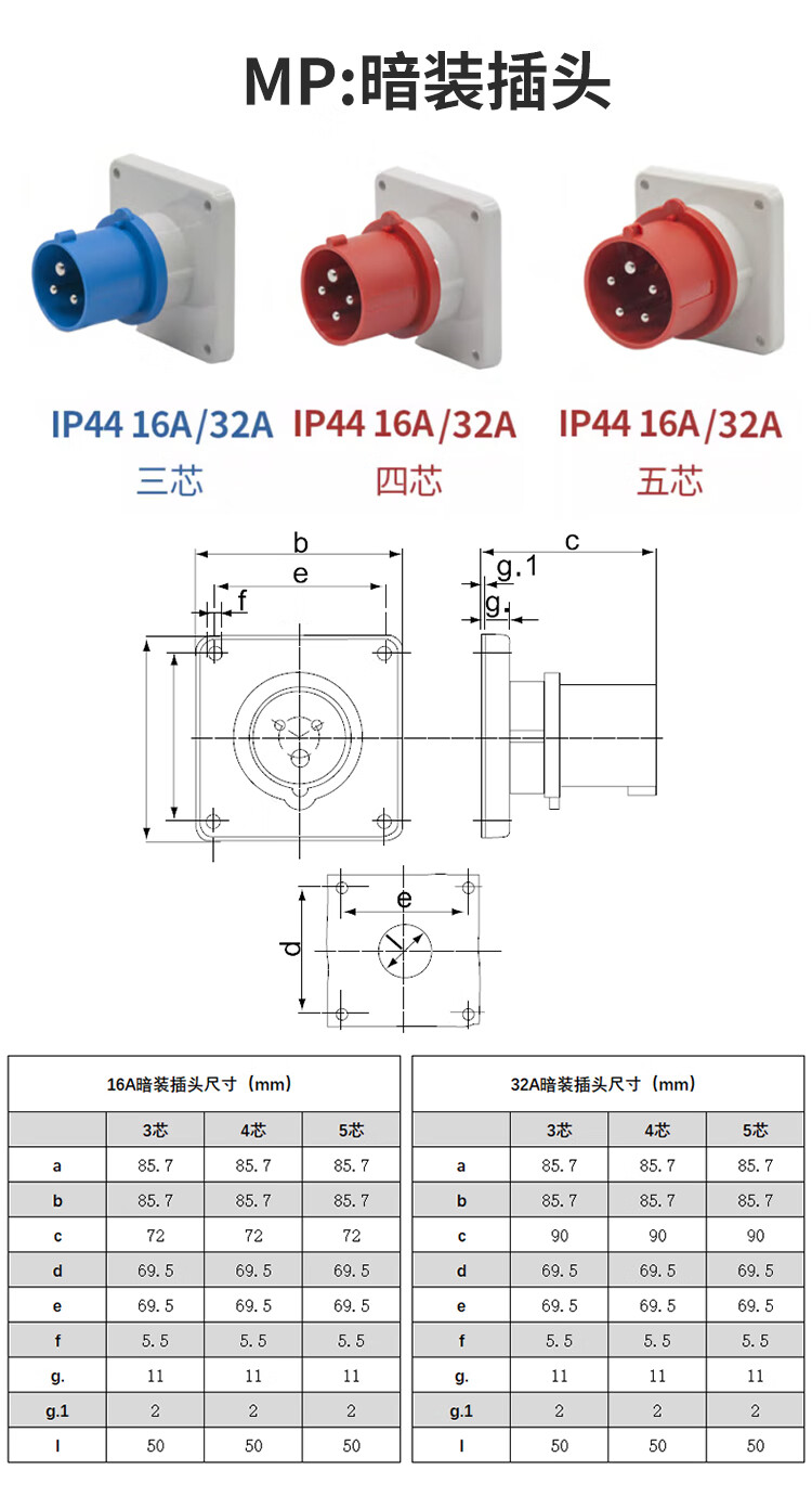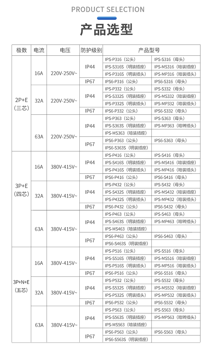 TOWE同为IP44防溅防泼CEE/IEC固定式工业插头插座3芯2P+E 4芯3P+E 5芯3P+N+E IPS-MS363/MP363/S363S/MS463/MP463/S463S/MS563