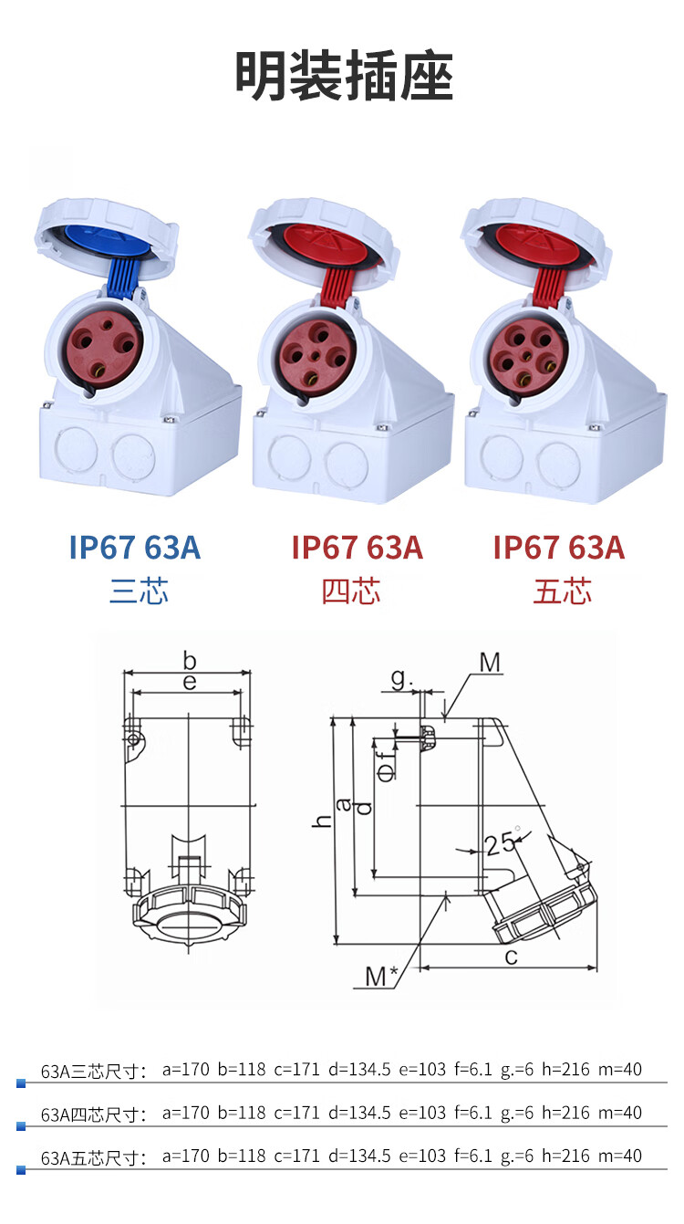 TOWE同为IP67防浸防尘CEE/IEC工业插头工业连接器耦合器 63A工业连接器插头插座 IPS6-P363/IPS6-S363/IPS6-P463/IPS6-S463/P563/S563