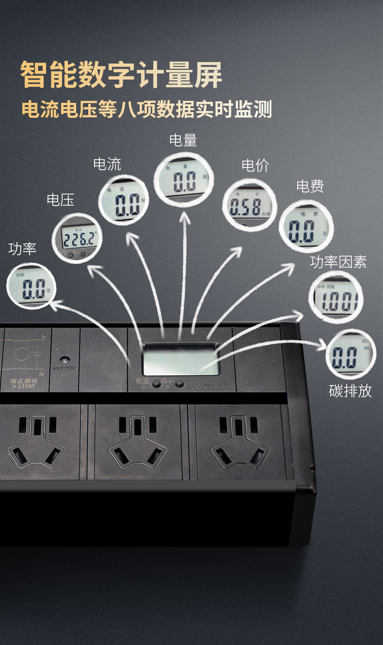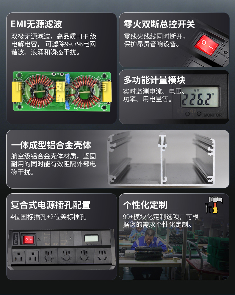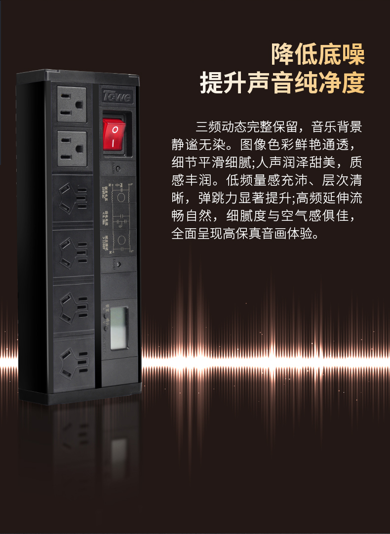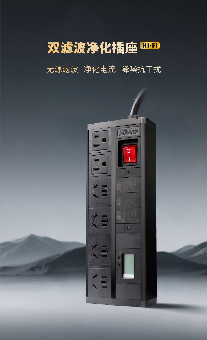 TOWE同为HIFI滤波桌面PDU滤波电源滤波器插座带数字计量电源净化器音响用桌面PDU插座