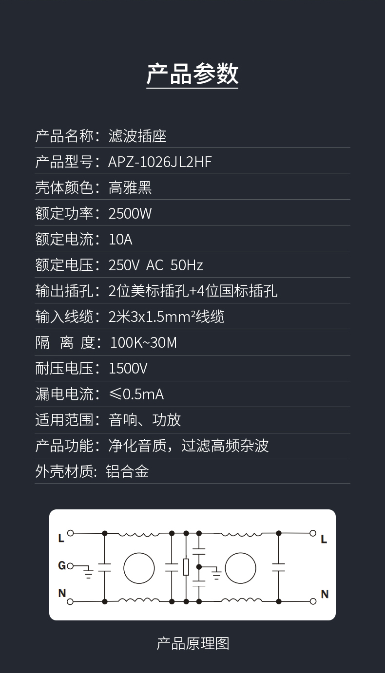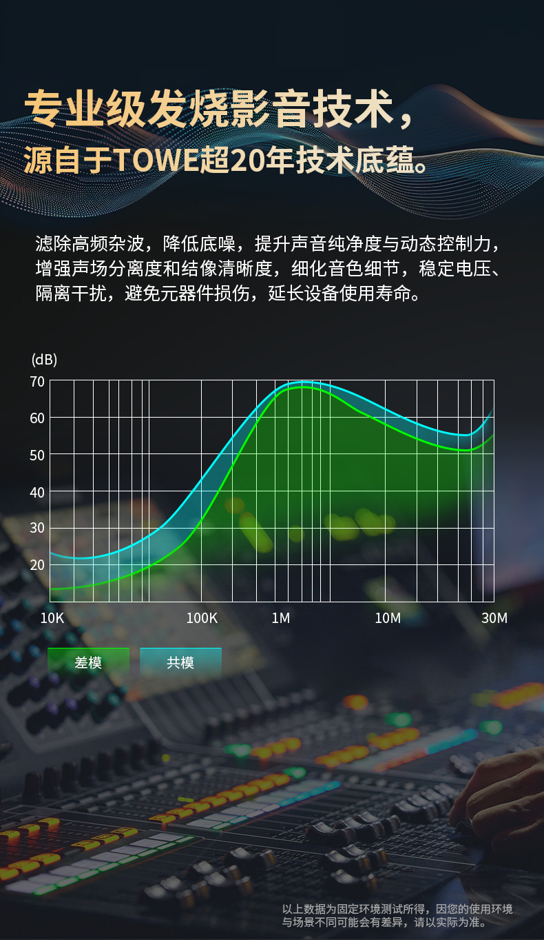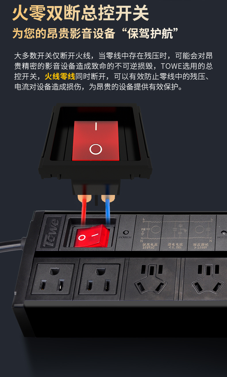 同为TOWE电源滤波器插排插座 220V抗干扰防雷滤波转换器插座 输出纯净电源 3x1.5平方加粗线缆 高频滤波防雷插座 工业级安全插座 支持定制 APZ-1026SF/APZ-1026SFK6