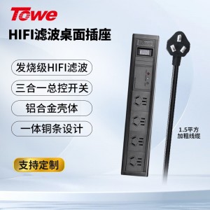 同为TOWE音响电源滤波器插排插座 发烧级HiFi功放胆机滤波器净化器摔不烂高强度铝合金外壳插座 音响发烧友专用3x1.5平方加粗线缆工业级安全插座 APZ-1014HF/1015HF/1026HF